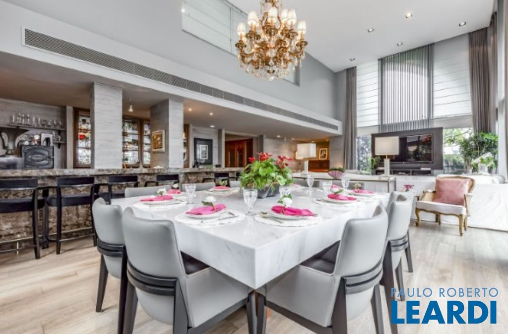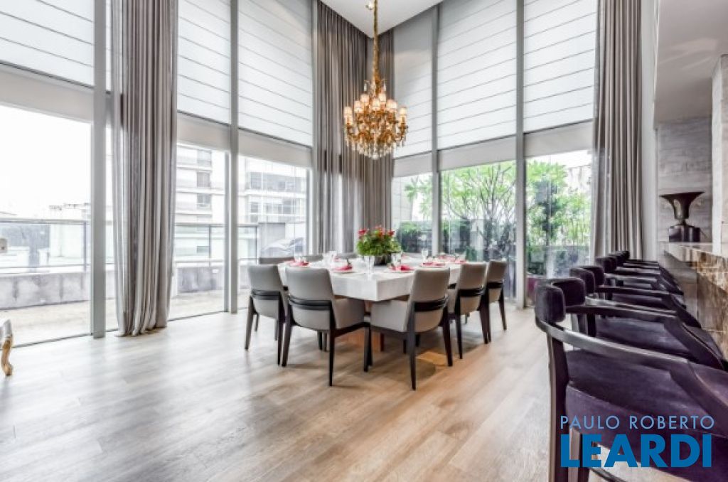 Cobertura duplex, no melhor trecho do Itaim Bibi, localizada no último andar do prédio, com vista total para o Parque do Povo. O imóvel teve as áreas abertas fechadas e integradas ao apartamento. Possui acabamentos de qualidade e decoração clássica, espaços amplos e área social para diversos ambientes, incluindo salas de almoço, jantar e de estar, sala íntima e adega para mais de 2.000 rótulos. São 6 suítes, todas espaçosas e com marcenaria impecável., a principal com dois banheiros e dois closets. Ainda na unidade, academia com sauna e jardim privativo e para completar seis vagas de garagem fixas e escrituradas.3011
