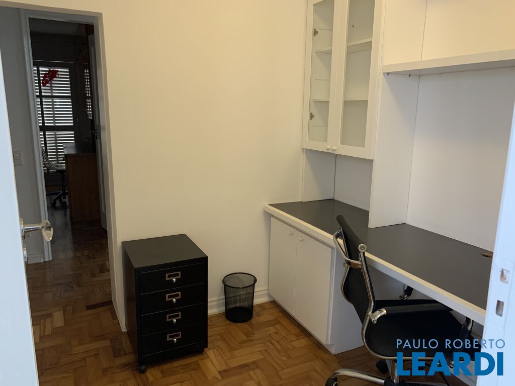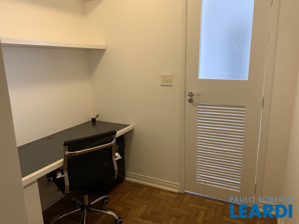 São 3 quartos, sendo uma suíte com closet, dois quartos com sacada, um banheiro e o quarto reversível transformado em escritório.