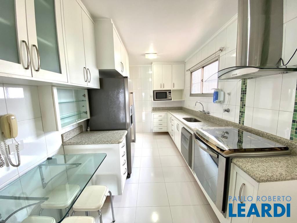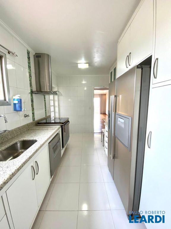 A cozinha, prática e moderna, vem equipada com eletrodomésticos de alta qualidade, como geladeira, microondas, fogão, coifa e máquina de lavar louças. Além disso, o apartamento inclui uma lavanderia funcional com dispensa, proporcionando um espaço adicional para organização e armazenamento.