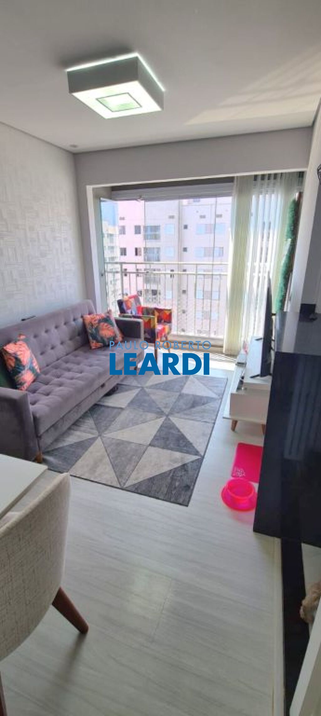 Sala com fechadura eletrônica e com sacada envidraçada.