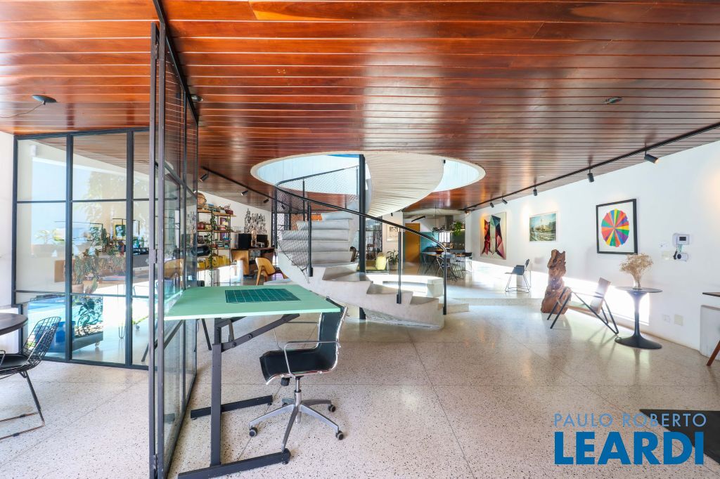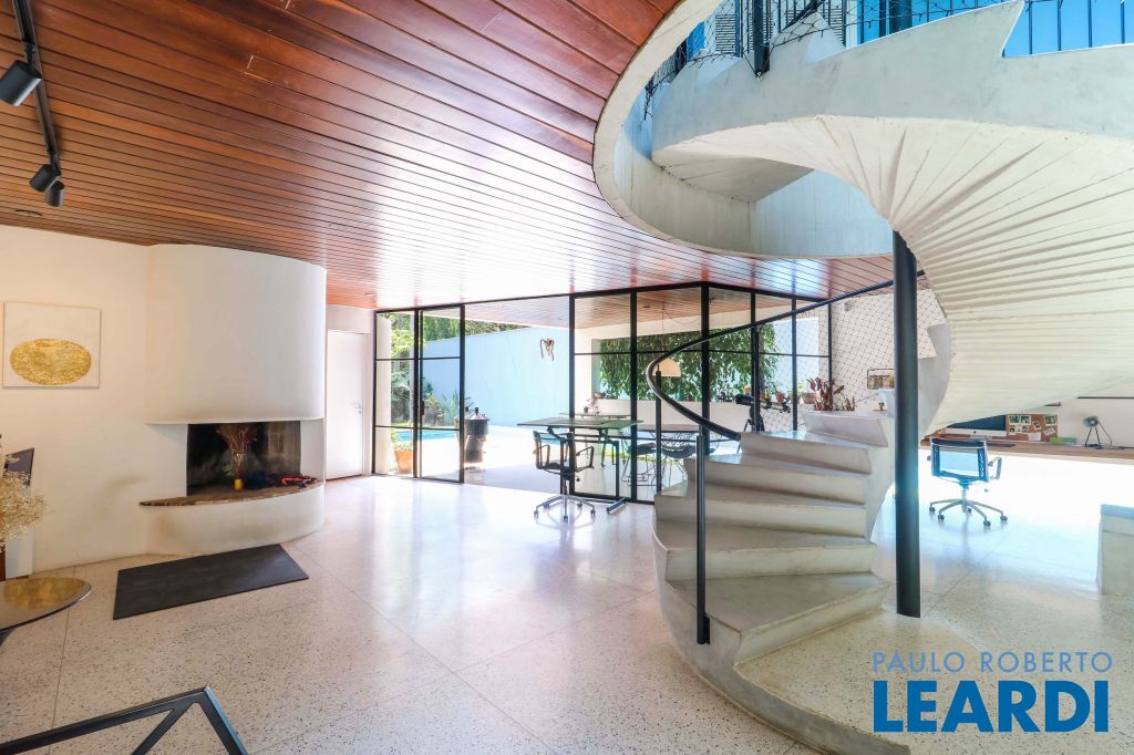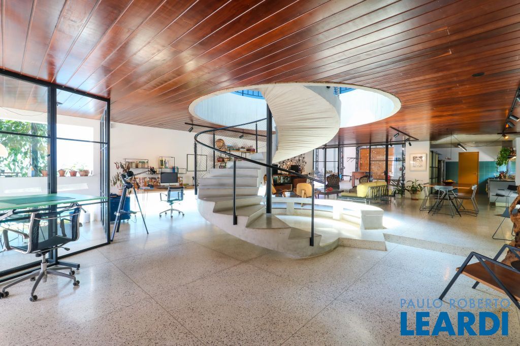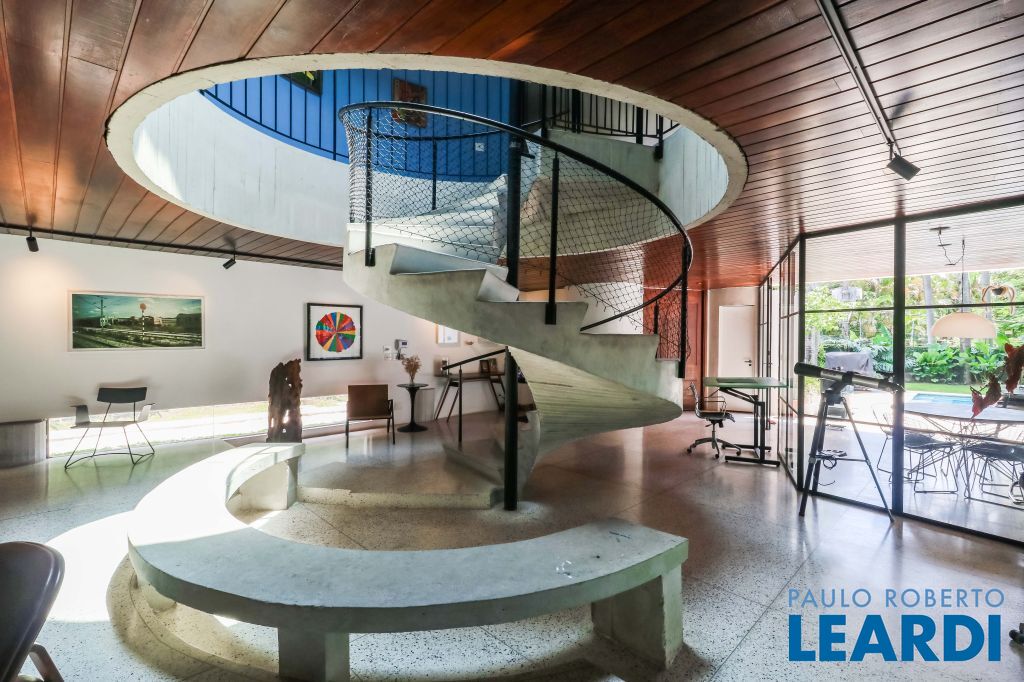 Espaçosa escada em caracol com ares modernista