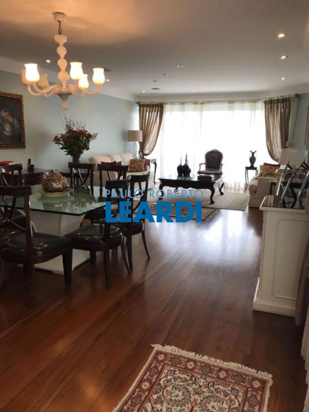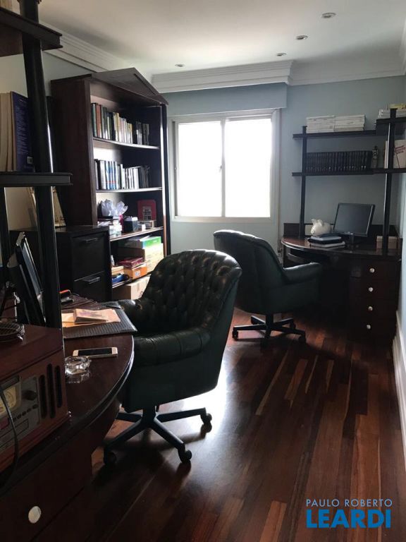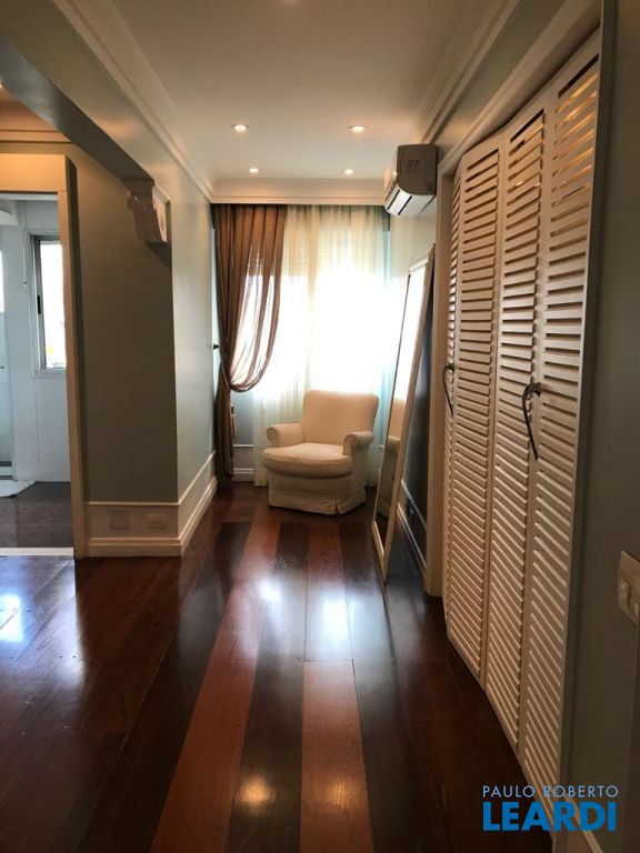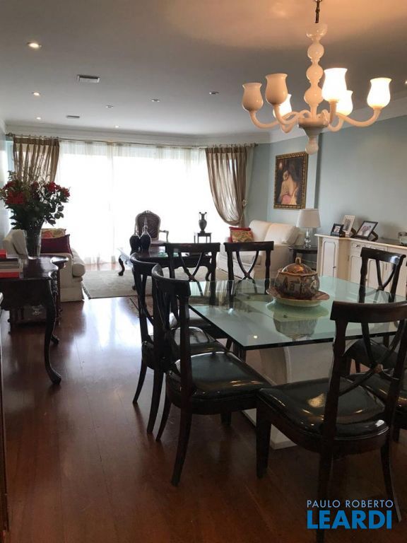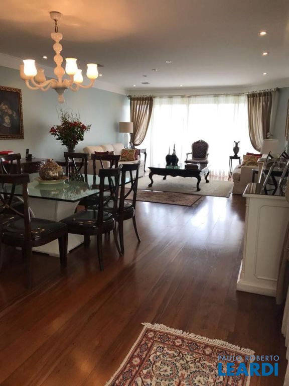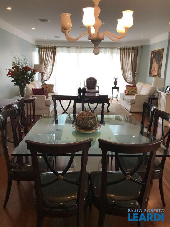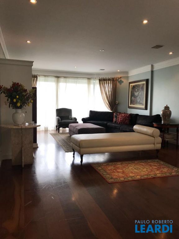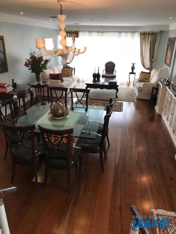Apartamento duplex com 288 m², com 3 suítes, living com varanda, cozinha, área de serviço, despensa, escritório, lavabo, sala de estar e jantar e 4 vagas de garagem.