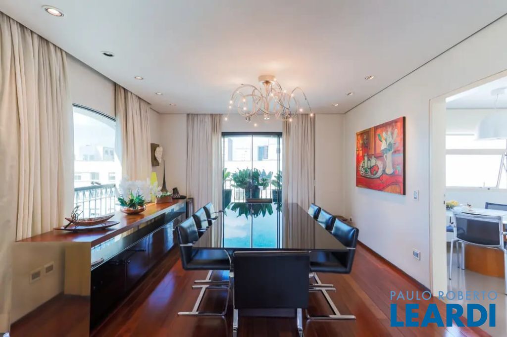 Ótimo apartamento no Ed. Adelina Prado de 288 m2, com espaços bem distribuídos em 2 quartos, sendo 2 suítes, onde a master foi ampliada através de um terceiro quarto e criou-se um espaço bem generoso. Projeto assinado pelo arquiteto José Ribeiro Neto para oferecer maior praticidade, funcionalidade e bem-estar nos ambientes como copa, despensa, espaço dedicado ao home office, home theater, estar e jantar integradas a uma sacada charmosa e com vista livre. Marcenaria planejada e de primeira linha. Apartamento pronto para recebê-lo! Conta com 3 vagas de garagem.