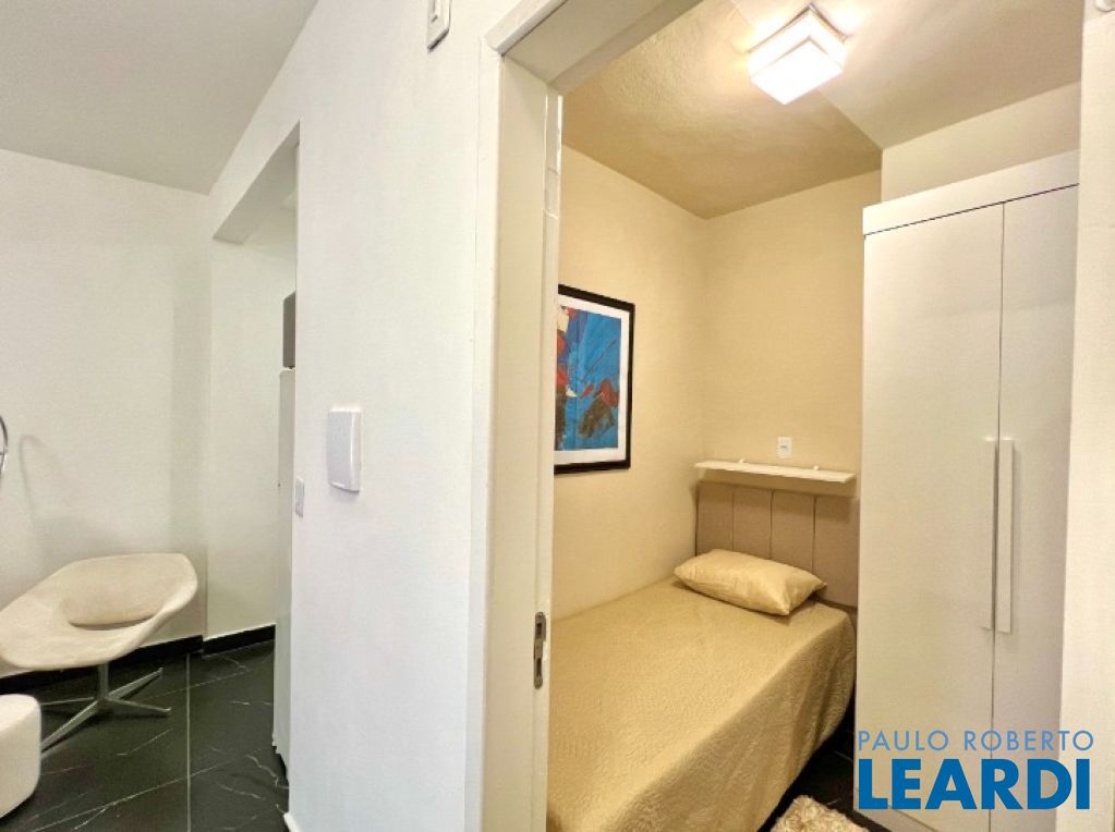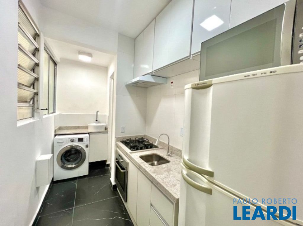 Apartamento com 2 dormitórios, sala, cozinha, lavanderia e banheiro, sem vaga de garagem. Unidade mobiliada, com móveis planejados e convencionais, além de eletrodomésticos incluídos.