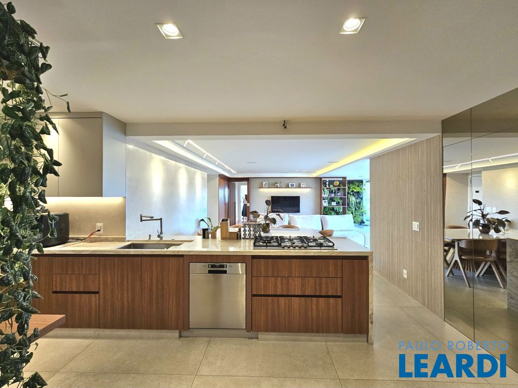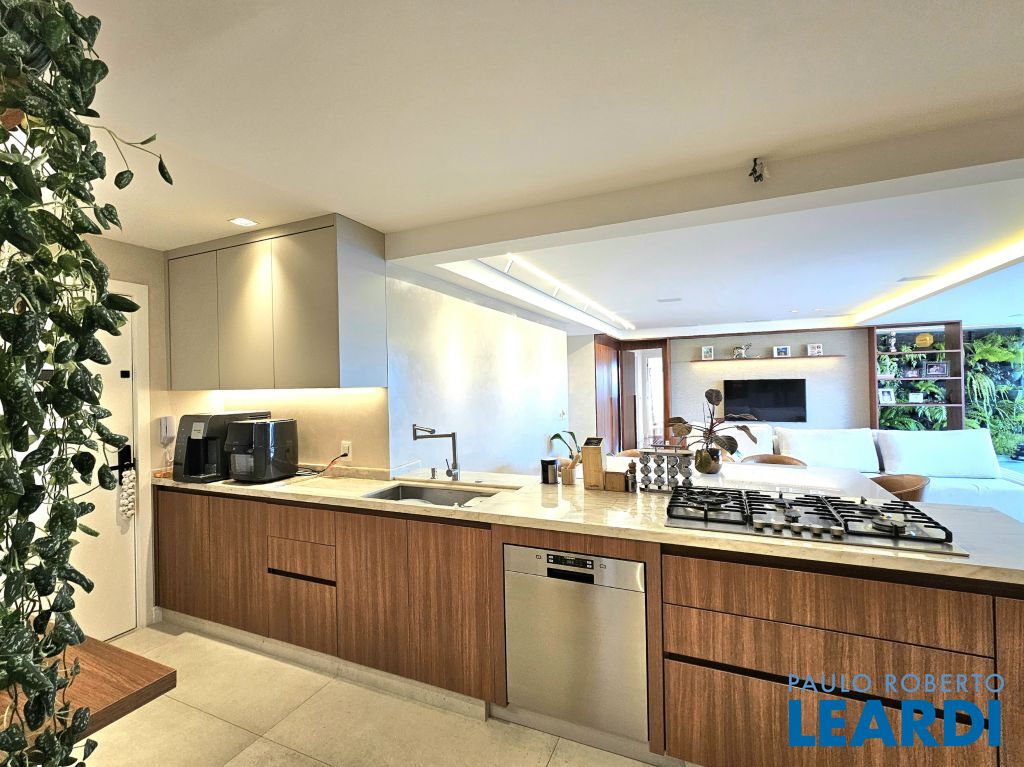 Cozinha aberta para a sala, moderna e funcional.
