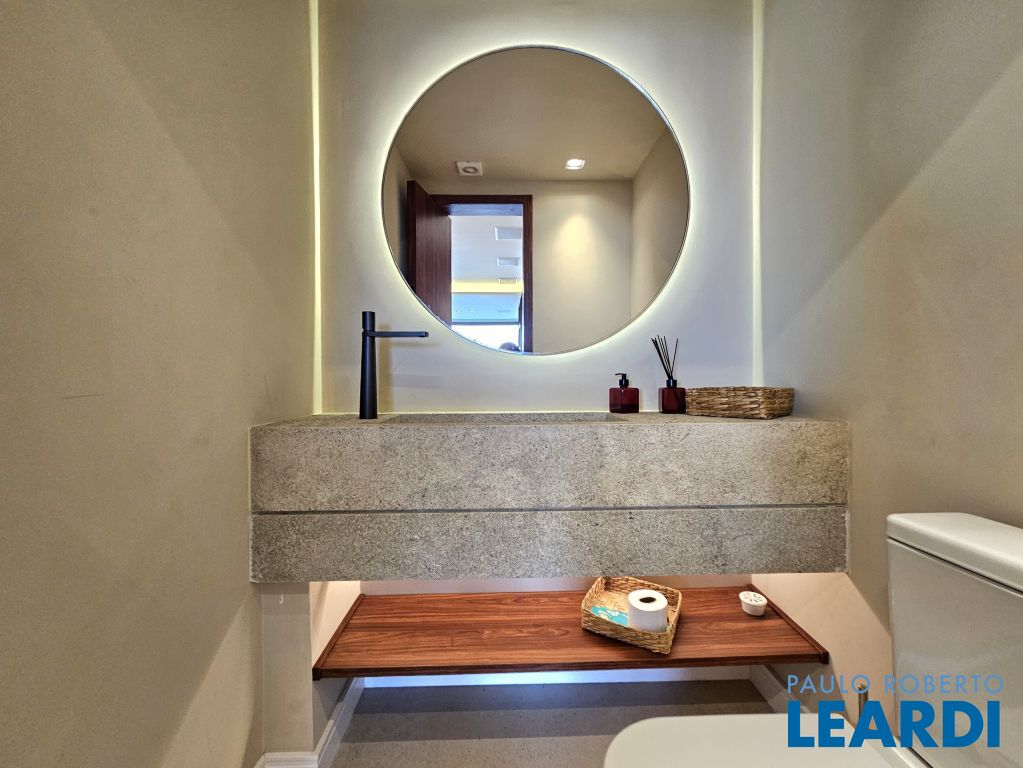 Lavabo com pia em granito flameado, um toque de design exclusivo.