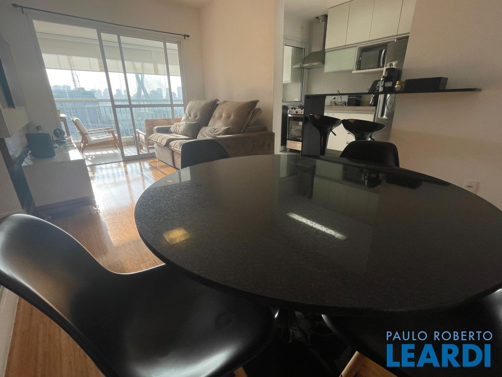 Apartamento mobiliado com 75m² muito bem distribuídos, oferecendo 2 suítes, lavabo e uma charmosa cozinha em conceito aberto, equipada com armários planejados.
