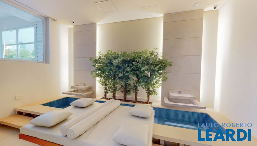 O condomínio oferece nas áreas comuns piscina adulto e infantil com solarium, churrasqueira, brinquedoteca, salão de festas, sauna, piscina coberta e aquecida, academia, sala para pilates, hidromassagem, lavanderia coletiva, mini mercado.