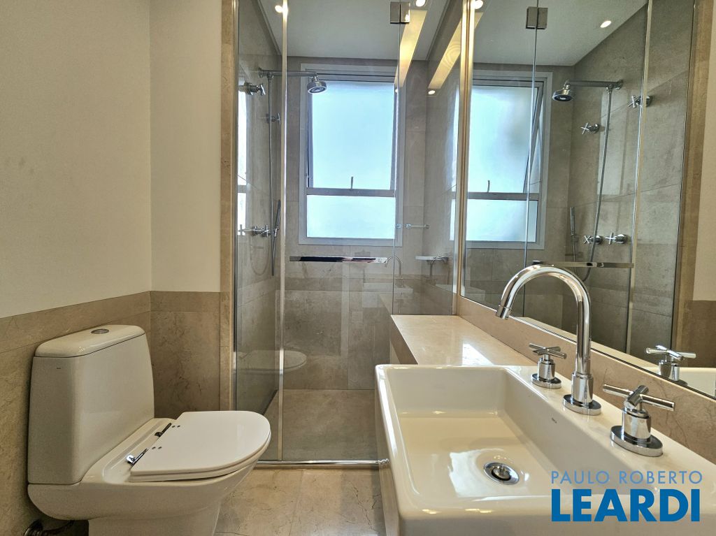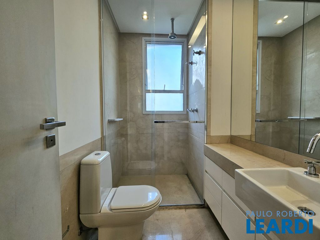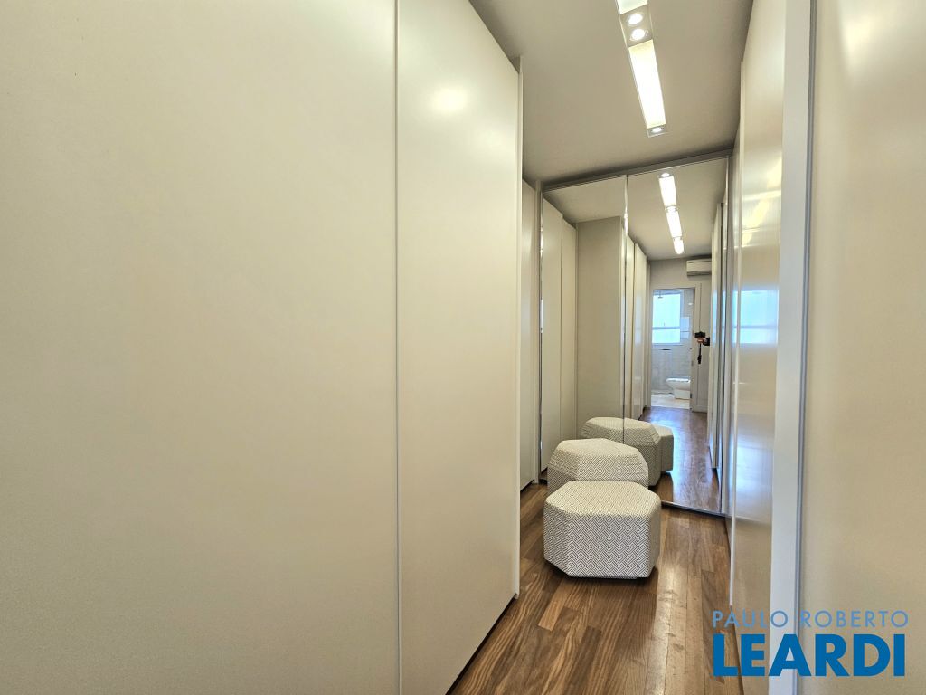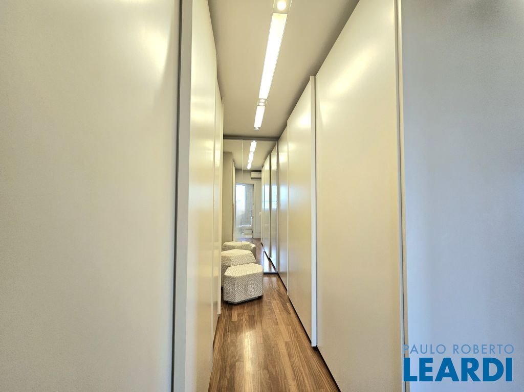 Na ala íntima, quatro suítes com piso em madeira e marcenaria Augusto Moreno, reconhecida pela qualidade dos materiais e acabamentos. Banheiros com aquecimento de piso, desembaçador de espelho e revestidos em mármore, mantendo a linguagem do projeto.