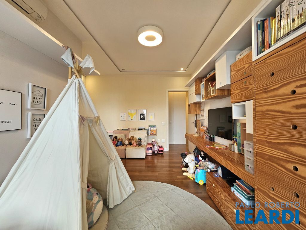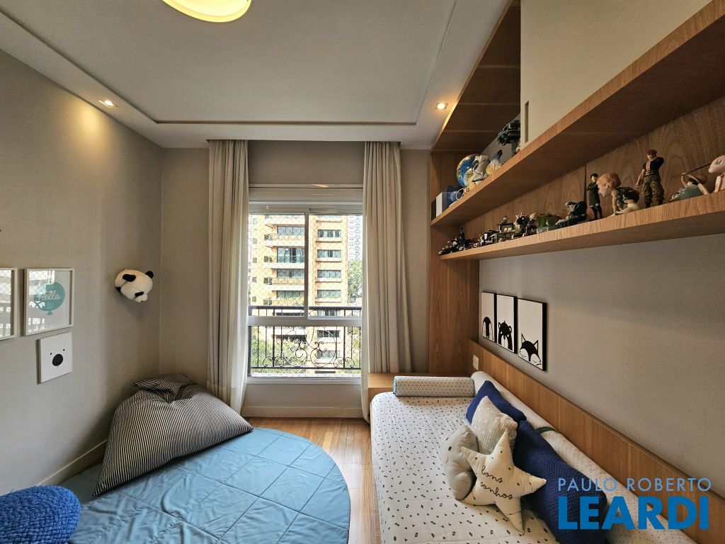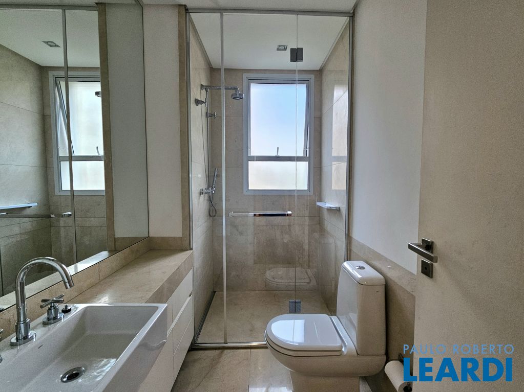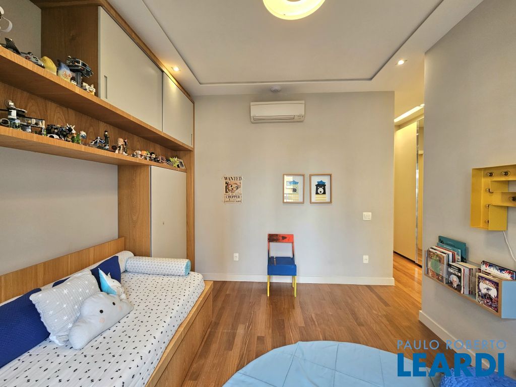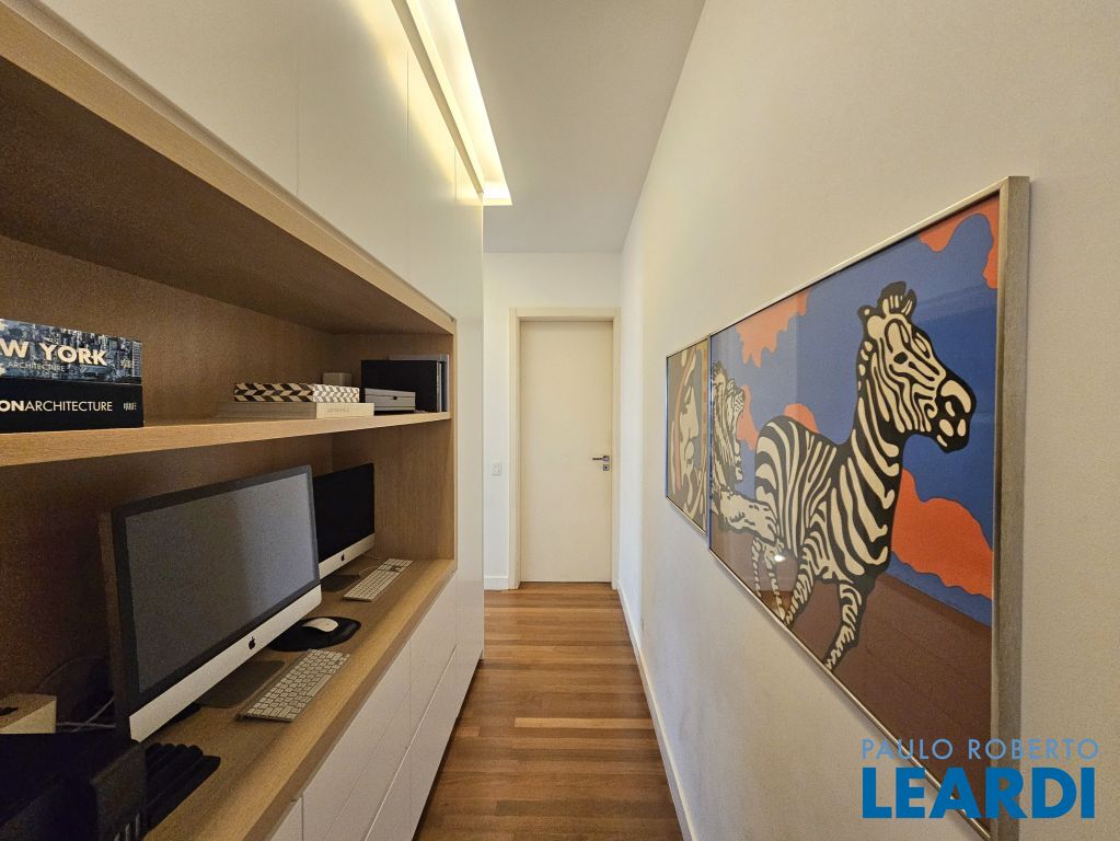 Na ala íntima, quatro suítes com piso em madeira e marcenaria Augusto Moreno, reconhecida pela qualidade dos materiais e acabamentos. Banheiros com aquecimento de piso, desembaçador de espelho e revestidos em mármore, mantendo a linguagem do projeto.