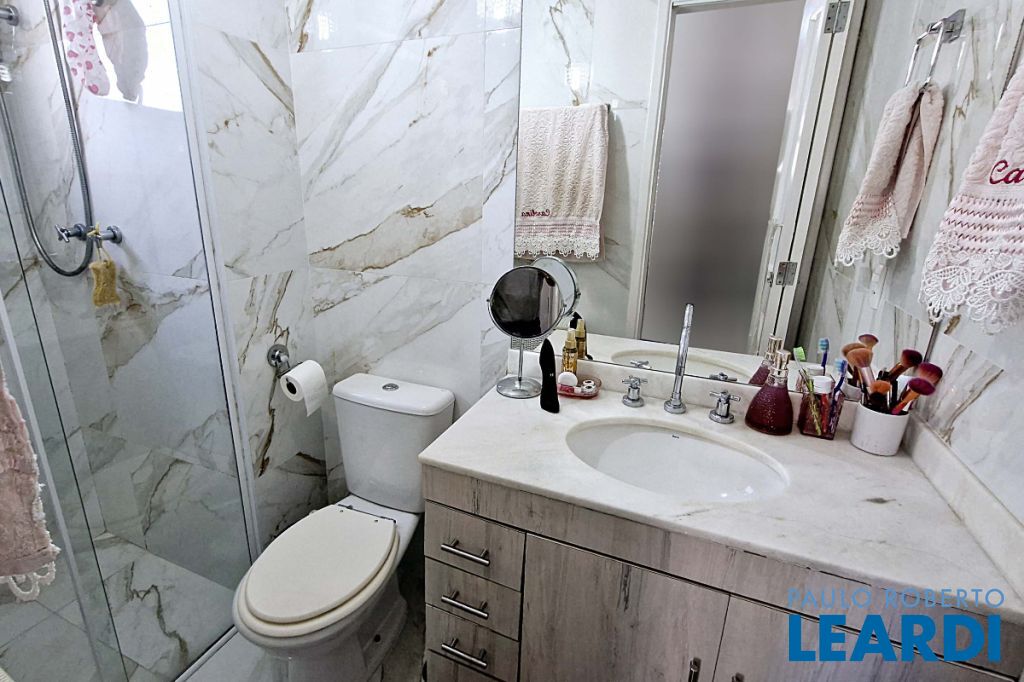 Ao todo, são 3 dormitórios, todos eles equipados com armários embutidos e closets, além de 2 banheiros , 1 lavabo e 1