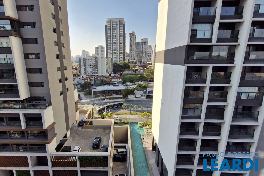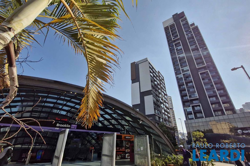 passo do metrô Brooklin, este apartamento contemporâneo, situado no 8º andar de um edifício novo e moderno, oferece