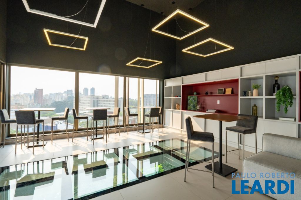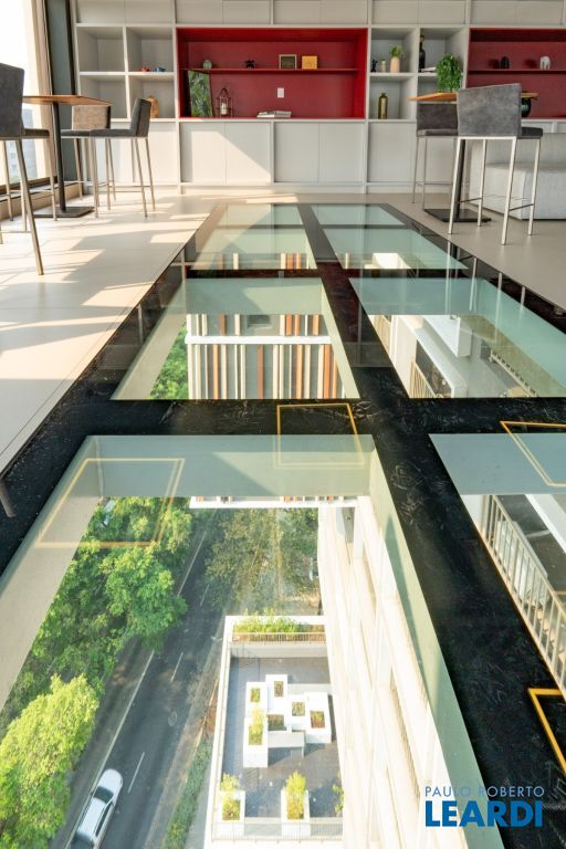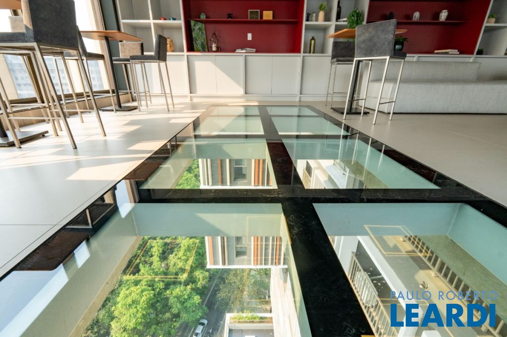 Espaços sociais, como coworking, espaço gourmet, bar, e o impressionante skybar no 19º andar, com piso de vidro e vista para Av. Reboulças;