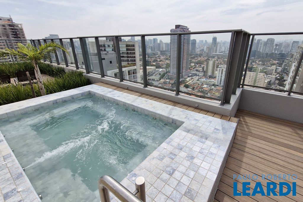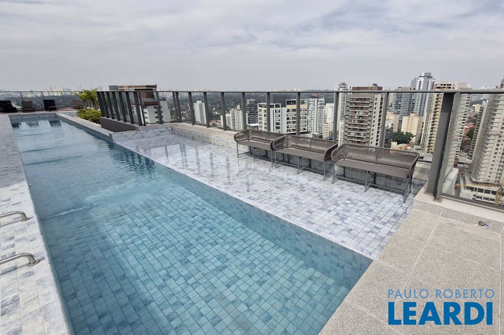 Piscina, jacuzzi e deck com vista panorâmica que contempla o bairro e a emblemática Ponte Estaiada perfeita para curtir o skyline da cidade.