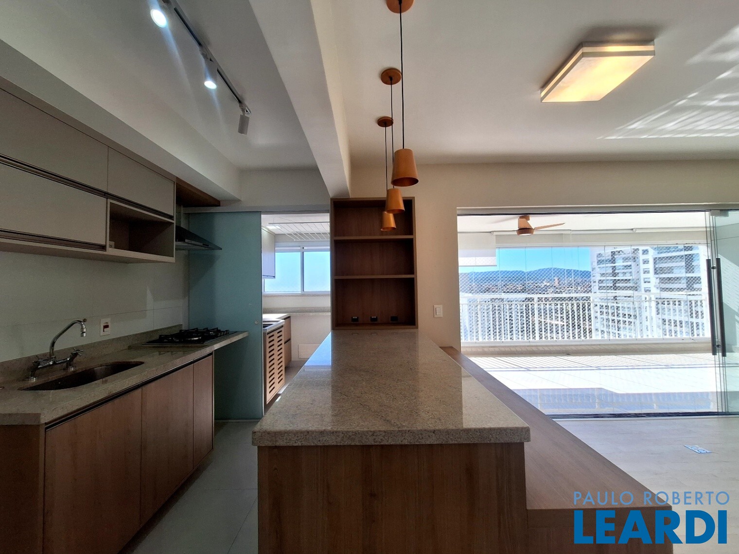 Terraço gourmet integrado à sala ideal para receber amigos e familiares