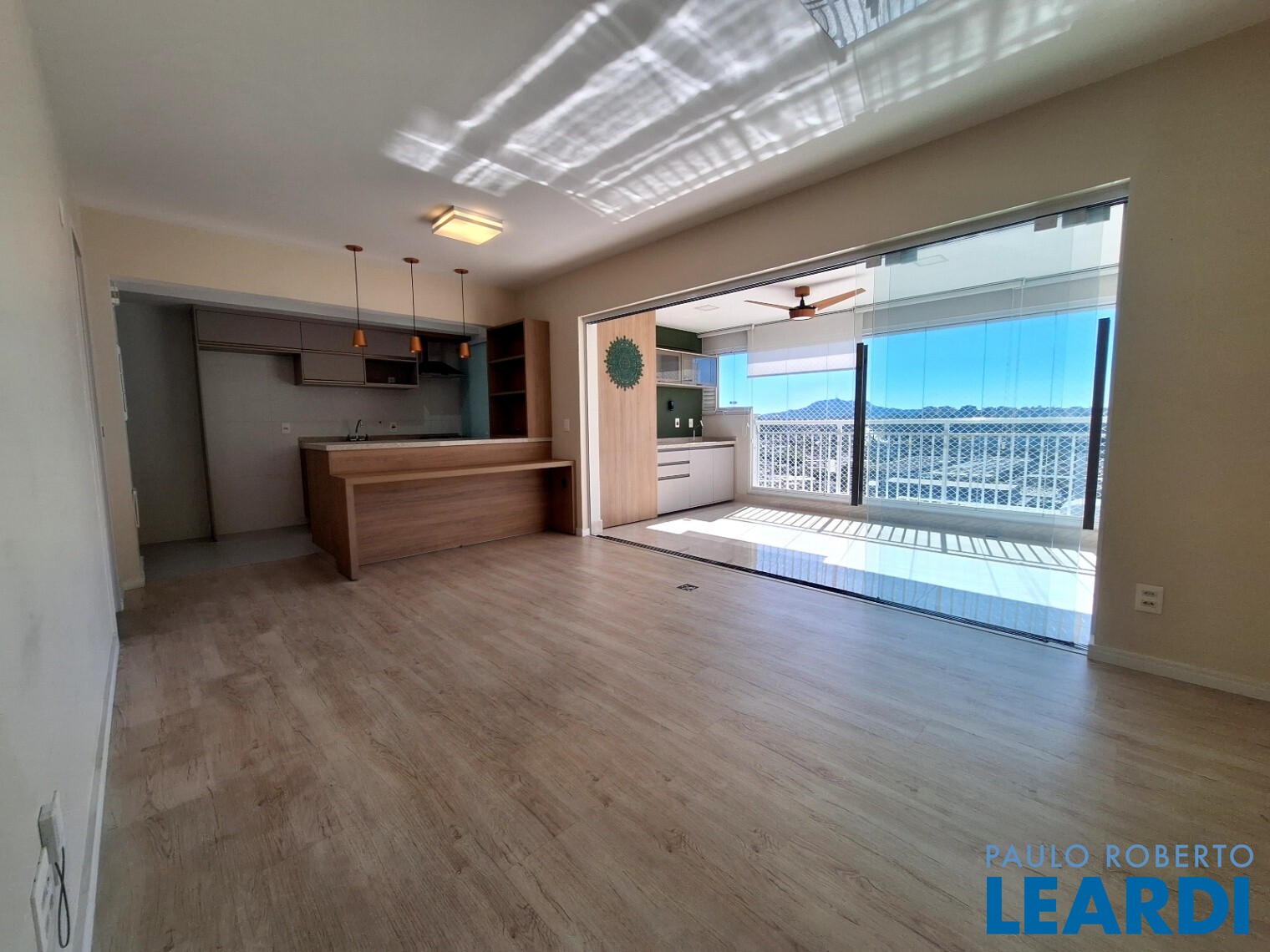 Sala ampla para dois ambientes, integrada à sacada com porta divisória para maior versatilidade