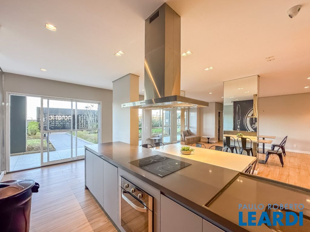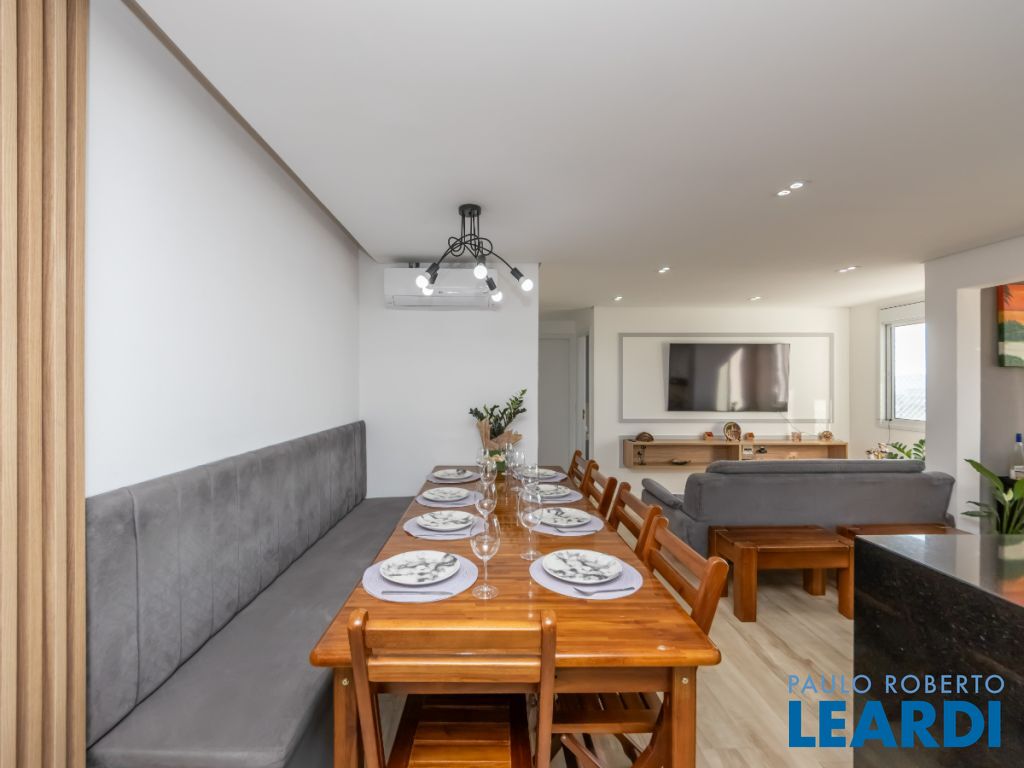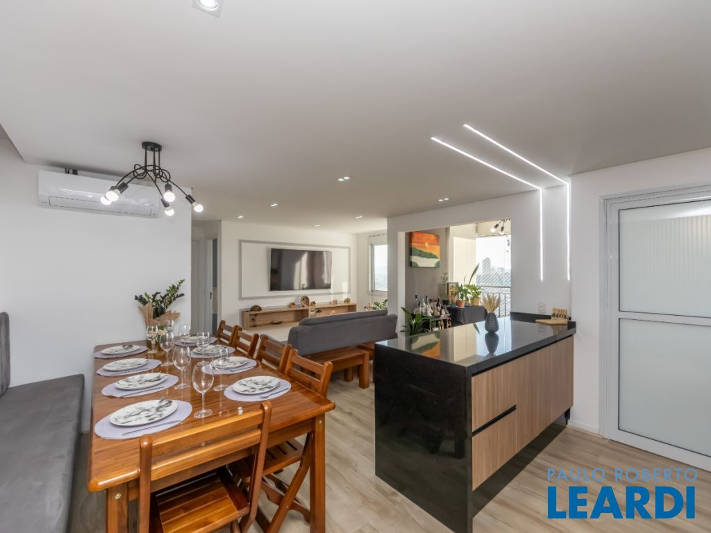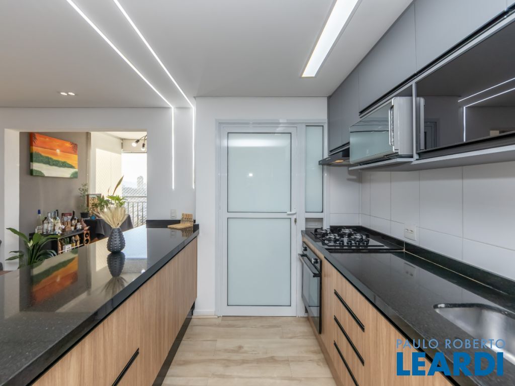 A cozinha americana é um destaque à parte equipada com cooktop, forno embutido e armários sob medida, combina praticidade e beleza em um só espaço. O apartamento conta ainda com 2 banheiros completos, área de serviço planejada, ar-condicionado instalado e 1 vaga coberta.