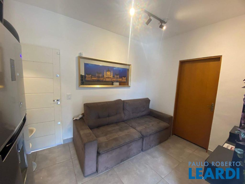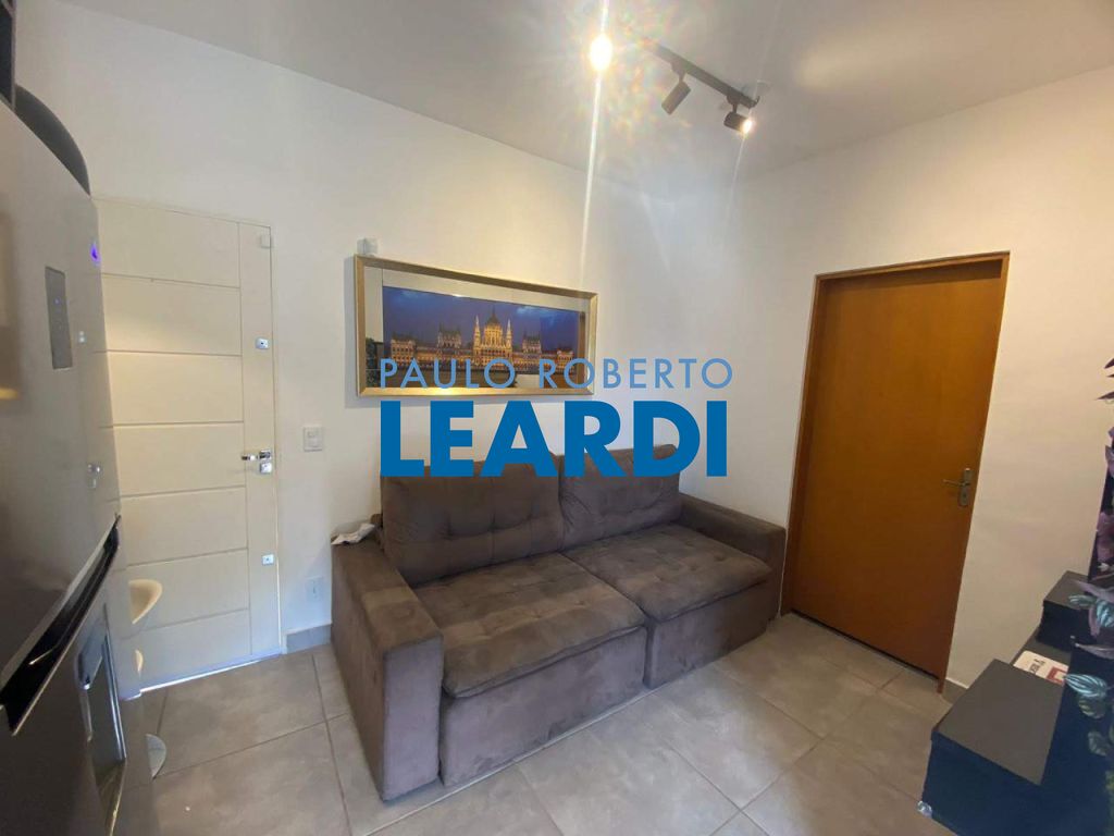 Casa em rua asfaltada. Contém 1 quarto, um banheiro, sala e cozinha integradas, varanda semi coberta e uma vaga de garagem. O quarto tem guarda roupa planejado e uma cama com baú, na sala/cozinha tem 1 painel, mesa retrátil, armário planejado, fogão cooktop, geladeira. Na lavanderia tem máquina lava e seca e tanque.