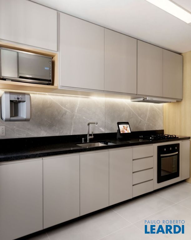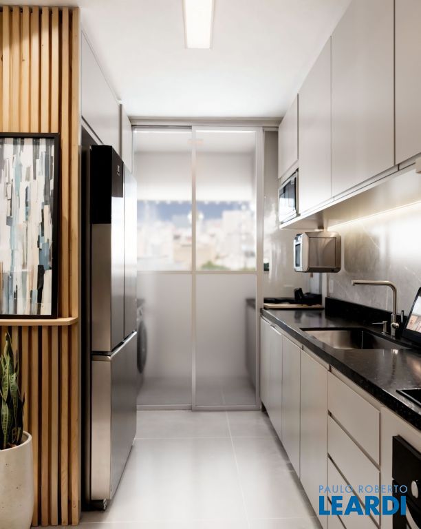 Cozinha bem distribuída e área de serviço prática.