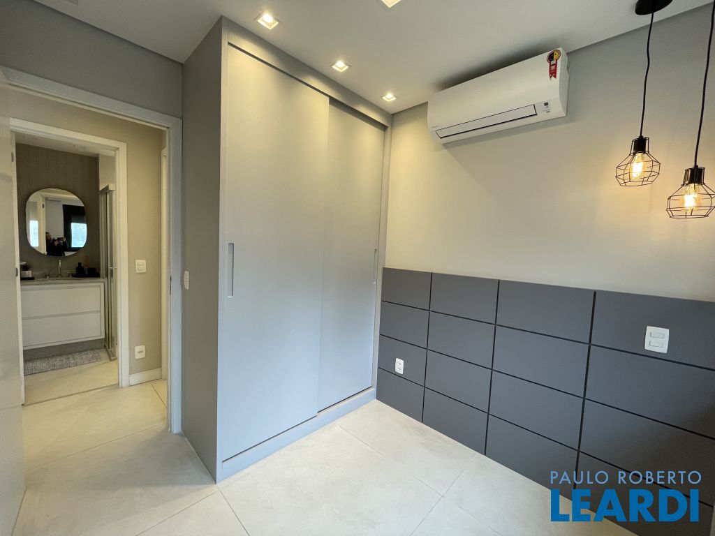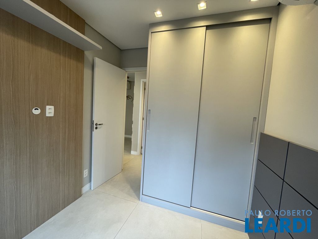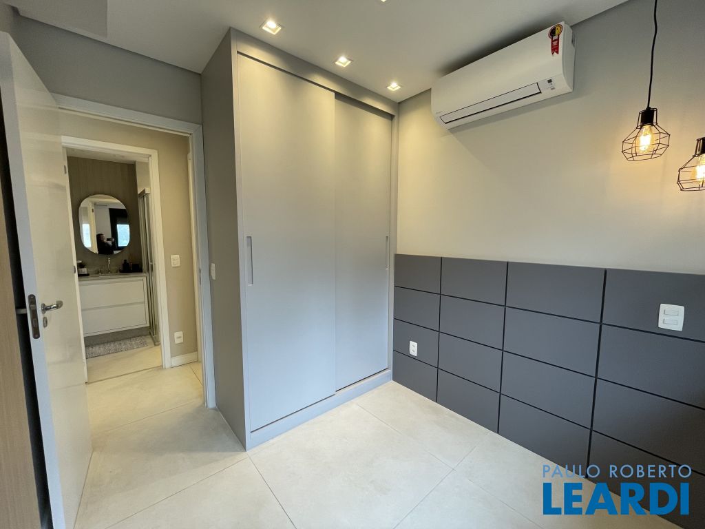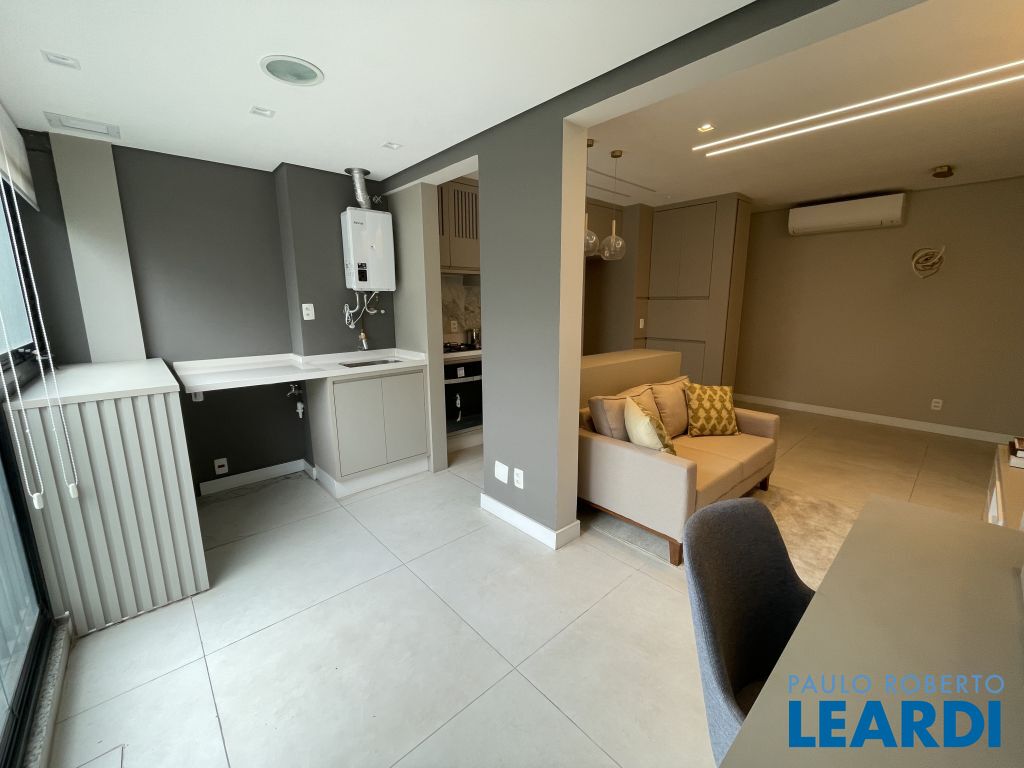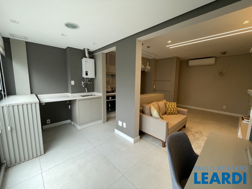 Com 59 m² bem distribuídos, o imóvel conta com 2 dormitórios, sendo 1 suíte, 2 banheiros, cozinha americana equipada, varanda integrada à sala e 1 vaga de garagem.
