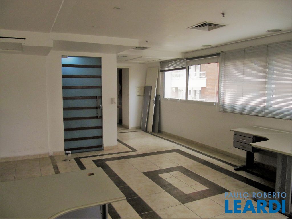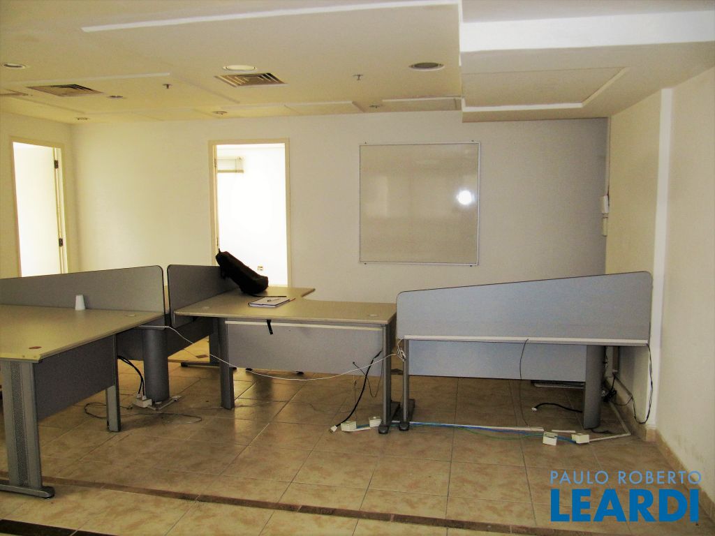3 salas unidas perfazendo 94m² sendo 1/2 andar no 2º piso. São 3 vagas e 6 WC´s e 1 copa. Cj possue piso elevado recoberto com cerâmica. Por ser 1/2 andar possue entrada de luz natural por 3 lados.
