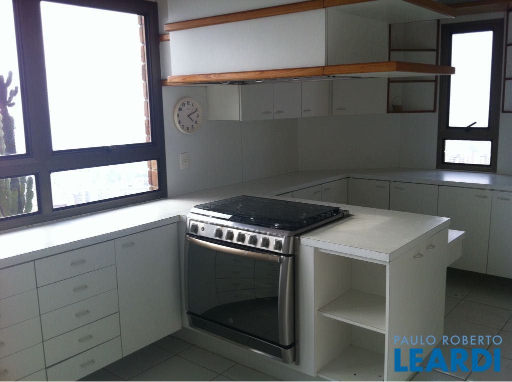 Ap. recém reformado, com a/c split em todos os ambientes, aquecimento de água em todos os pontos, portas de serviço e social blindadas. Hall social e sala para jardim de inverno com mármore italiano/madeira maciça. Living com 130 m², escritório com armários em madeira italiana. Sala de jantar com jardim, sala de almoço com piso em porcelanato e terraço gourmet com vista direta para escola americana, armários em mad patinada. Coz americana com bancada em mármore/inox com desenho especial mekal, tipo ilha, com coifa e fogão. Suíte master com porta blindada, 40m², closets, armários e penteadeira em madeira nobre. Banheiro com duas cubas, banheira de hidromassagem e chuveiro de alta pressão. Mais duas suítes com armários em madeira nobre e piso em taco de madeira especial e banheiros com granito/porcelanato e chuveiros de alta pressão. Área intima: Todo piso em taco de madeira maciça, armários e roupeiros Ornare , cubas e misturadores monocomando italianos e porcelanato espanhol no banheiro da suíte master. Forro de gesso e sancas trabalhada em todo o apartamento com iluminação especial. Toda parte elétrica nova.