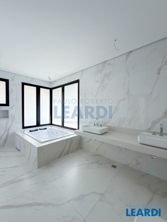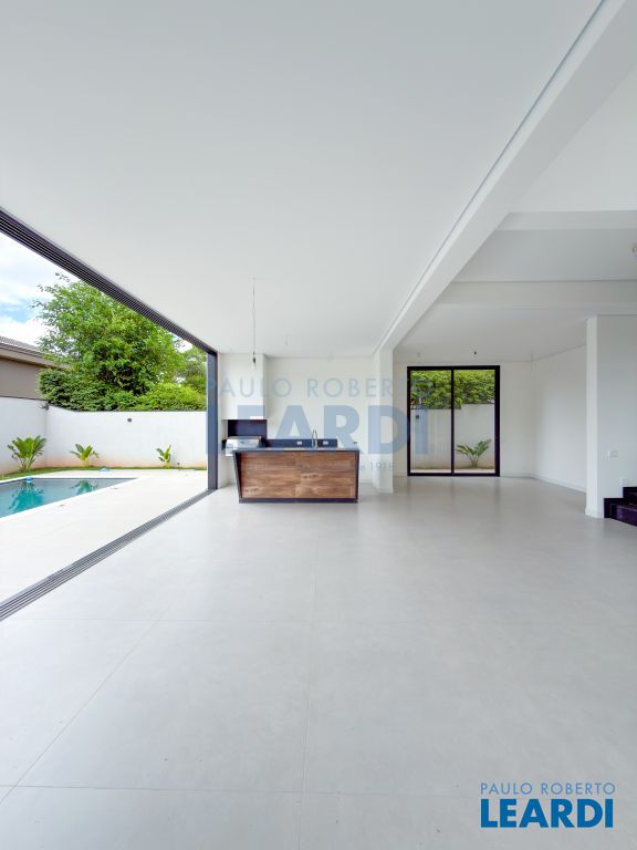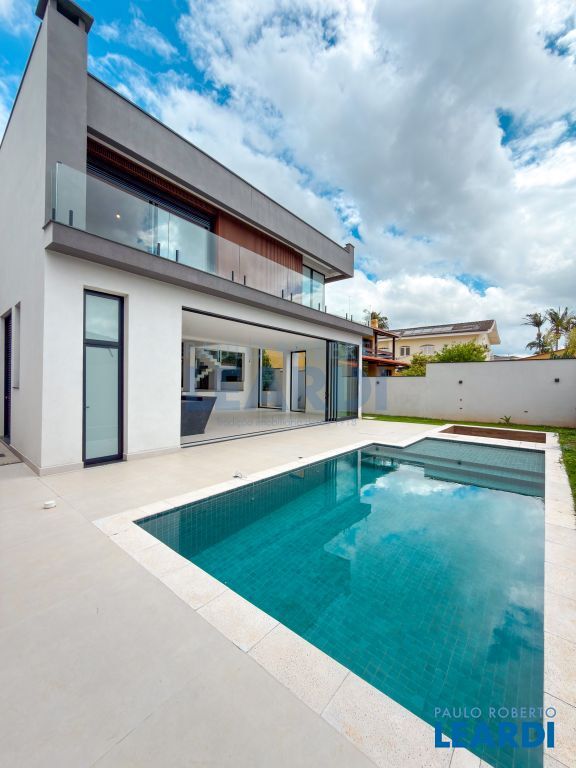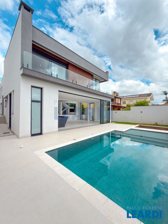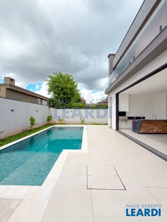 5 suítes, living para 2 ambientes, escritório, jardim de inverno, cozinha planejada com despensa, área de serviço, dependência de empregada, aquecimento solar, espaço gourmet com churrasqueira, piscina, edícula, 2 vagas de garagem.