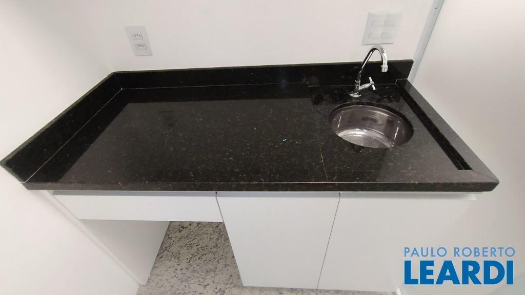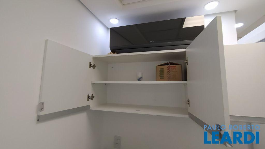Sala com 34 metros com sanitário, copa e terraço. Piso elevado em granito, com marcenaria e divisórias em vidro e alumínio. 1 vaga de garagem. Andar alto, prédio novo, serviço com manobrista, sala de espera e ótima localização! Alugado, venda com renda.0504