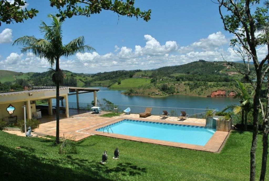 Excelente propriedade em área rural, Com 5,5 Alqueires, tendo como destaque a Mansão Paradisíaca com 1.300m² de área construída, toda revestida em madeira, com portas e janelas de alumínio,sala ampla com bar, mesa de madeira maciça e decoração requintada conforme fotos, todas suítes com armários embutidos de frente para a Represa de Igaratá, churrasqueira com fogão de lenha e forno para pizza, salão de jogos completo, piscina com cachoeira, sauna úmida, campo de futebol, quadra de vôlei, Capela, rampa para descida de lancha ou jet ski e casa para caseiro. OBS: pode ser locada também para fins comerciais só que Valor sobe para 25.000,00 nesses casos!!!!!!!!3103