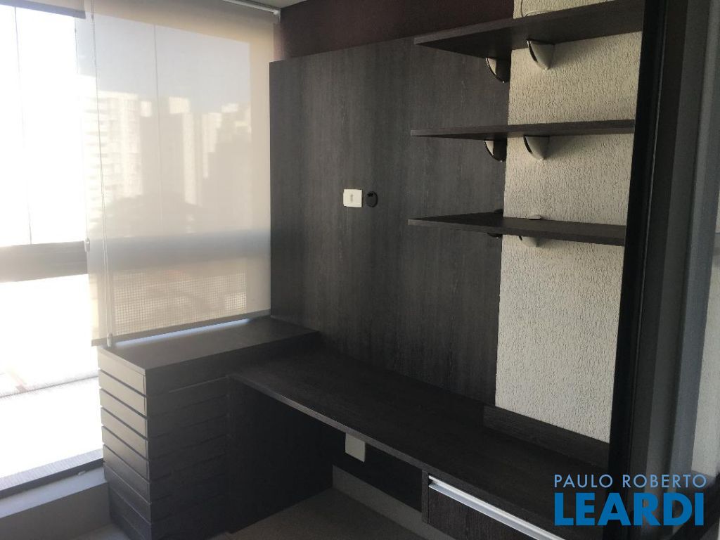 Apartamento finamente mobiliado com geladeira e micro-ondas de aço inox, cook-top e forno embutidos, cama-box e colchão, iluminação indireta, ar condicionado, varanda fechada com vidro temperado, sofá de 3 lugares e estante/rak; andar alto com vista para o Jardim Paulista; Hall de entrada, cozinha, sala, e dormitório, integrados; cozinha com piso de cerâmica vitrificada, geladeira, gabinete com pia de inox, cooktop, forno, e gaveteiro, armário, micro ondas; sala com mesa e 4 cadeiras, painel de madeira com prateleiras, e armário totem; interfone; dormitório com cama-box de casal e colchão, armário embutido com portas de correr; porta de vidro para varanda fechada com persianas de enrolar e vista para o Jardim Paulista, piso em porcelanato, sofá de 3 lugares e estante/rac com prateleiras,; banheiro com portas de vidro temperado , ducha, exaustor, pia sobreposta em gabinete; iluminação indireta em todo o apartamento; 2 aparelhos de ar condicionado; cortinas; 1604