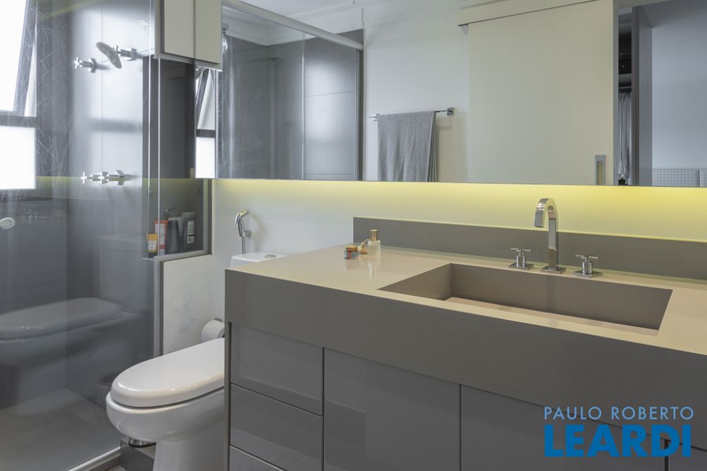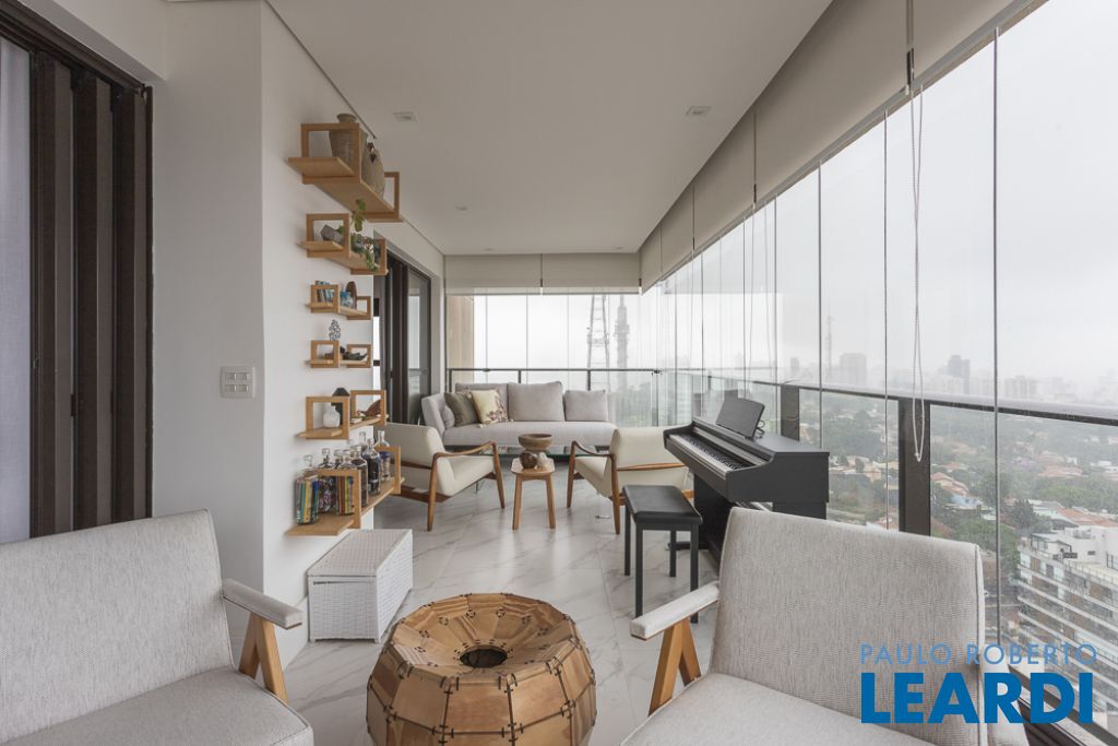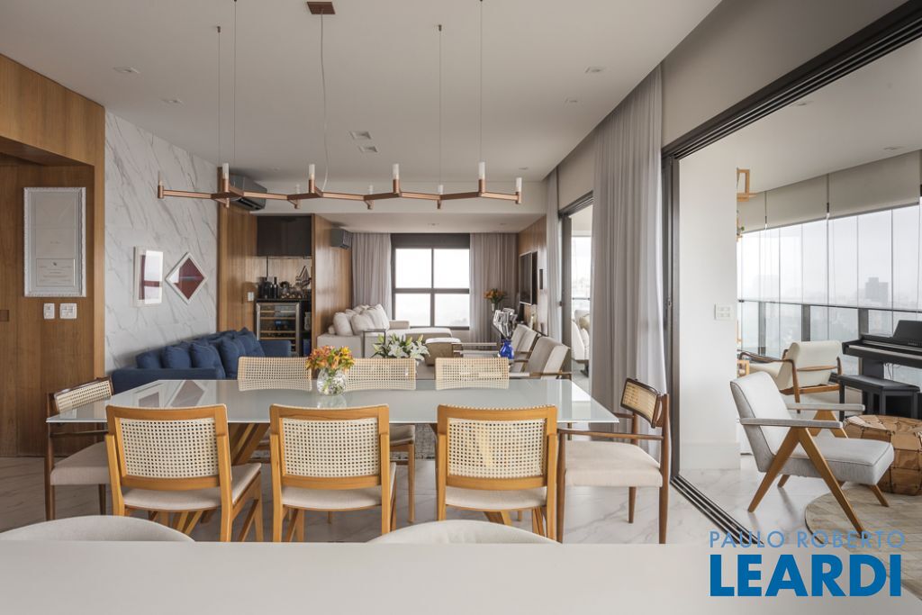 Ótima planta, ambientes amplos e bem iluminados. Living, cozinha, área de serviço com quarto e wc para funcionária, lavabo, 2 suítes, sendo a master com CLOSET E BANHO - SR e SRA e 4 vagas de garagem. Andar alto com vista eterna. Acabamento de primeira linha - persianas automáticas (blackout), ar condicionado em todos os ambientes, hall de entrada privativo e elevador com senha, marcenaria completa, cozinha, despensa e gourmet - armários Bontempo.