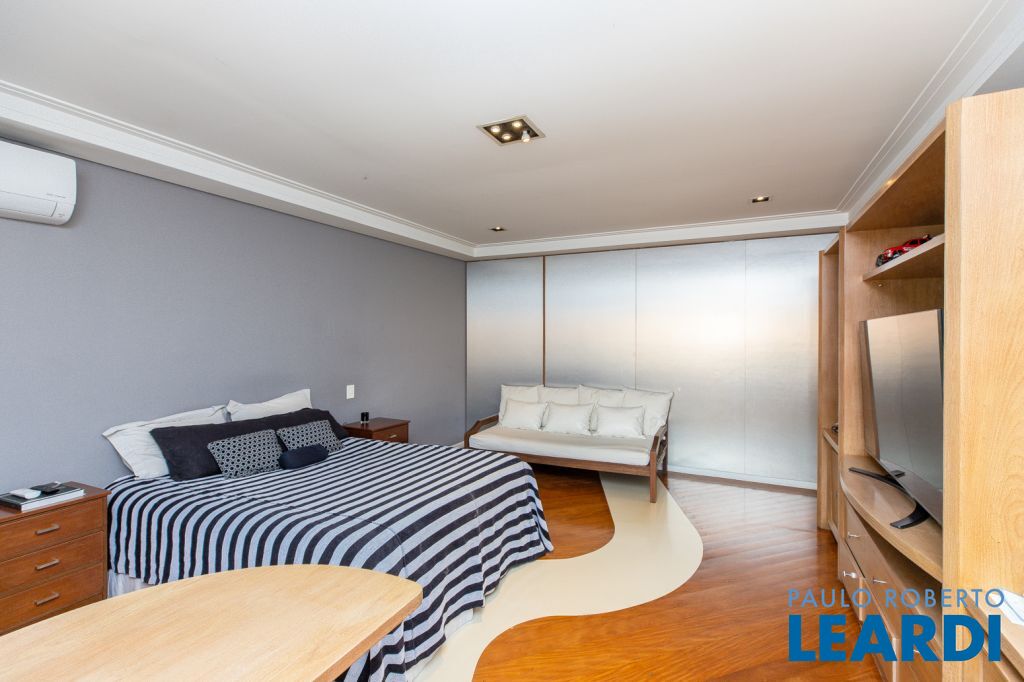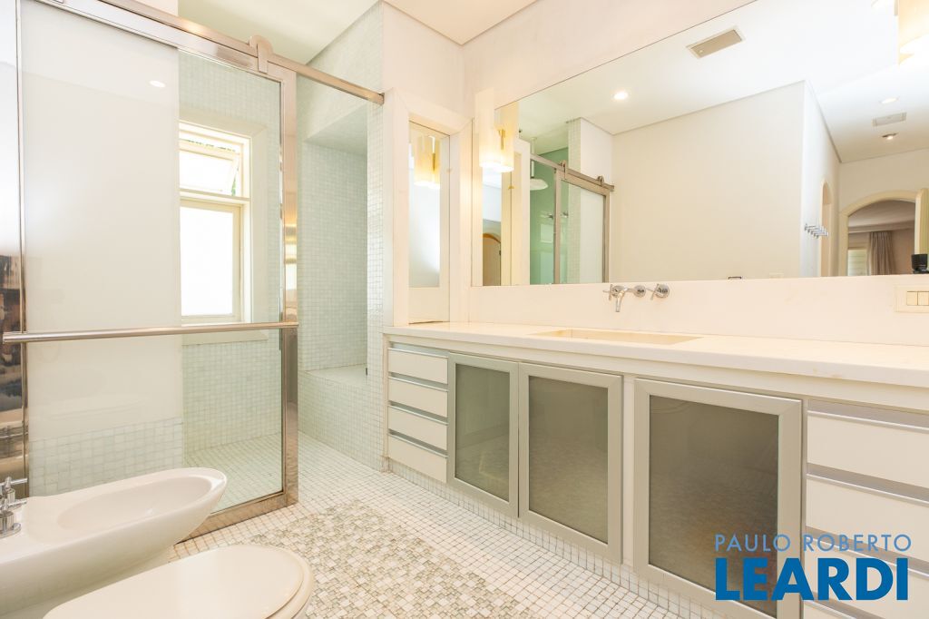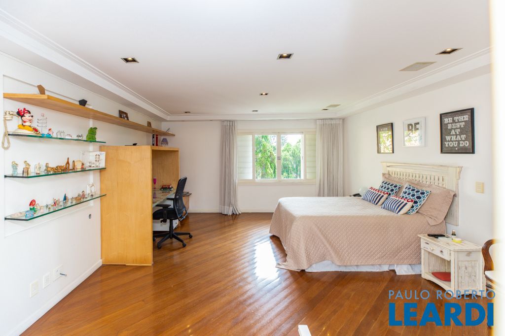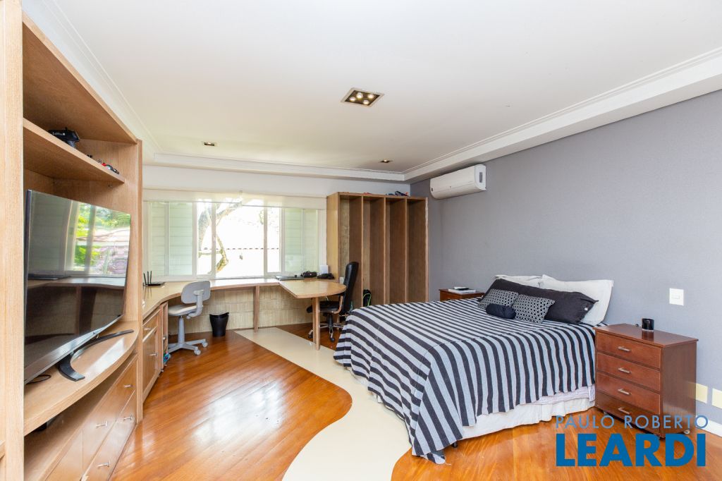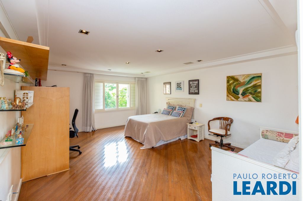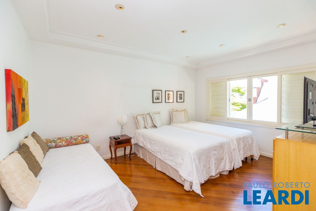 No segundo piso da casa, entramos na área íntima, onde se encontram 3 amplas suítes, cozinha, sala de jantar, área de serviços, dependências de empregados, e sala de tv.