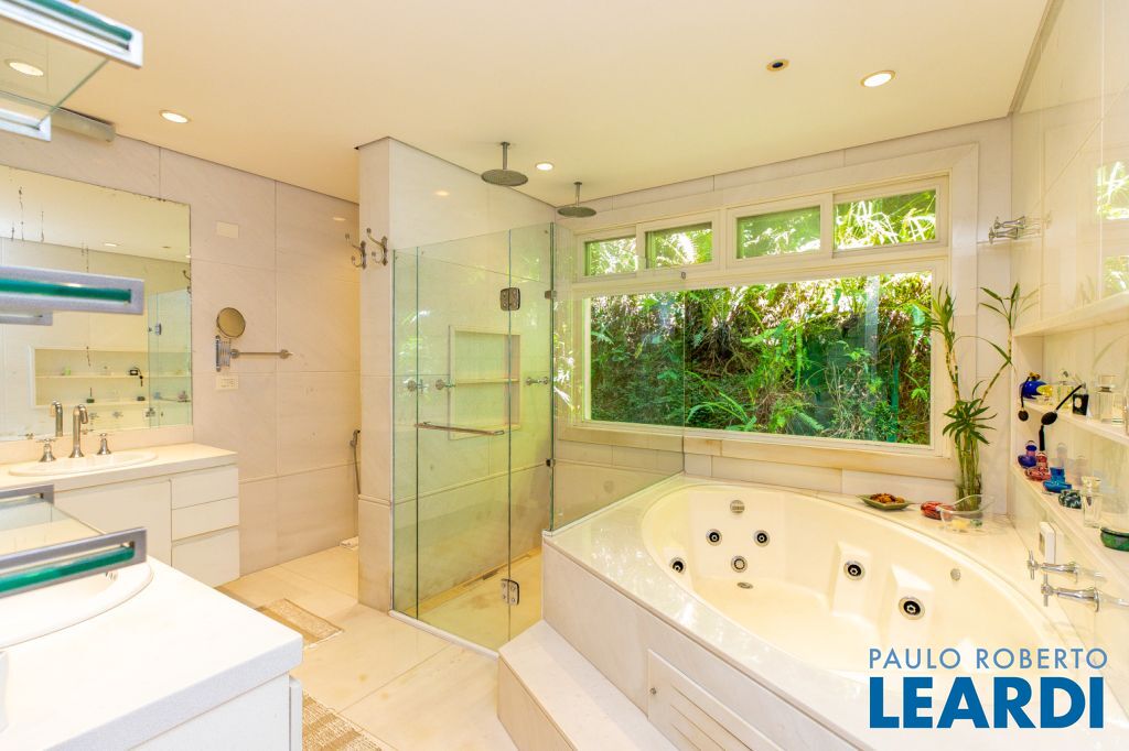 No segundo piso temos o quarto e sala de Tv, e no primeiro piso, Closet Sr e Sra, e um banheiro amplo, com uma parede , com a a natureza integrada ao ambiente.