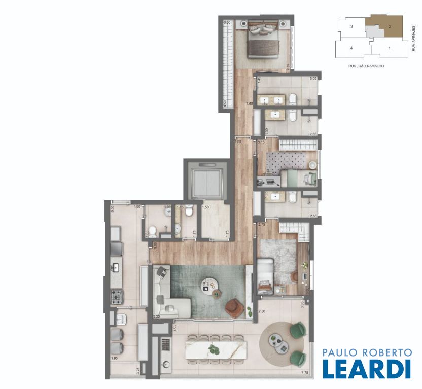 O apartamento no bairro Vila Romana possui 104 metros quadrados com 3 quartos sendo 3 suites e 5 banheiros