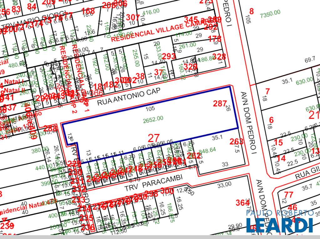Terreno de 2.652 m² localizado na Avenida Dom Pedro I, esquina com ótima visibilidade e grande fluxo, no bairro Vila Pires, em Santo André. O imóvel possui construção antiga e conta com 26,50 m de frente e 105 m de lateral, sendo ideal para empreendimentos comerciais ou residenciais.