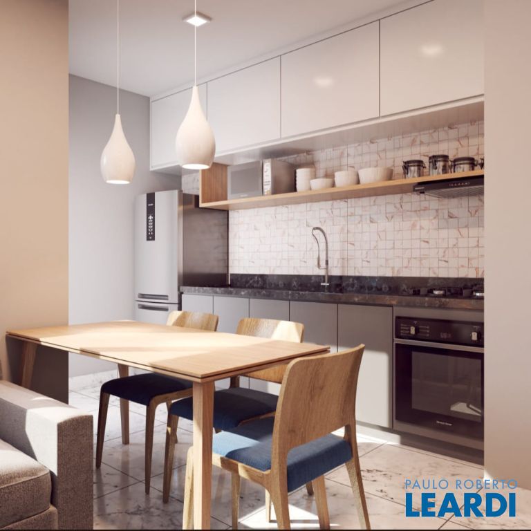 O apartamento possui dois dormitórios, sendo uma suíte, uma sala dois ambientes integrada com a cozinha, um quintal e uma vaga de garagem.