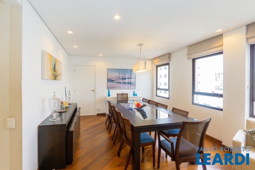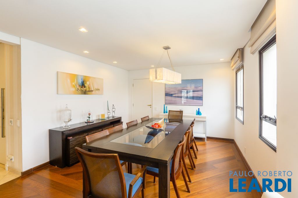 Este apartamento de 201m² é perfeito para uma família grande, com três suítes espaçosas, um escritório para quem faz Home office, living com 3 ambientes e lavabo; copa e cozinha, além de uma dependência de serviço completa, possui janelas amplas que proporcionam ambientes arejados e iluminados. E ainda tem mais: uma varanda aconchegante com churrasqueira e uma vista incrível, onde você pode relaxar em uma rede ou em poltronas confortáveis. Os acabamentos finos dão um toque especial ao apartamento. A suíte principal conta com closet e a cozinha está repleta de armários. E para completar, possui três vagas na garagem e opções de lazer no prédio, incluindo salão de festas e piscina. Não perca a oportunidade de conhecer esse belo imóvel na Avenida Pavão proximo do Metro Eucaliptos e Shopping Ibirapuera .Faça uma visita!0902