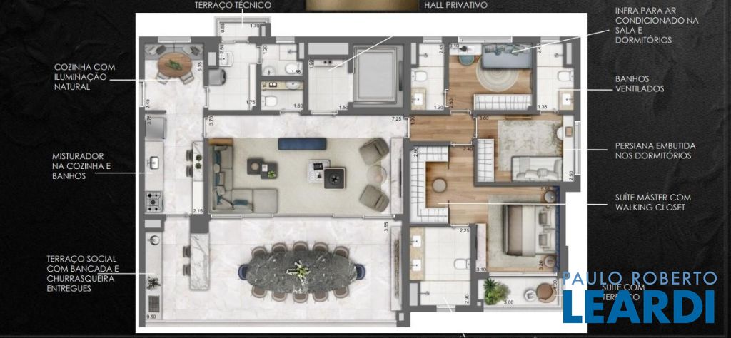HALL LIVING 2 AMBS, HD 3 STS SENDO 1 MASTER COM VARANDA, TERRACO GOURMET, LAVABO, SL DE ALMOCO, B. SOCIAL, COPA COZINHA, AS, WC...