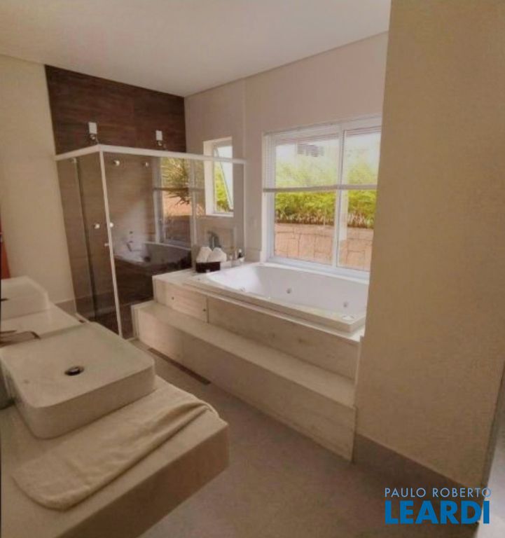 A área íntima conta com três suítes amplas, todas com closet, sendo a suíte master um verdadeiro refúgio, equipada com duas duchas, duas cubas, jacuzzi e sanitário privativo. A casa ainda oferece uma confortável sala de TV (home cinema), escritório, lavabo com banheiro completo, copa, cozinha planejada, despensa e lavanderia, além de um espaço preparado para adega em pedra com 20 m², com acesso interno e externo.