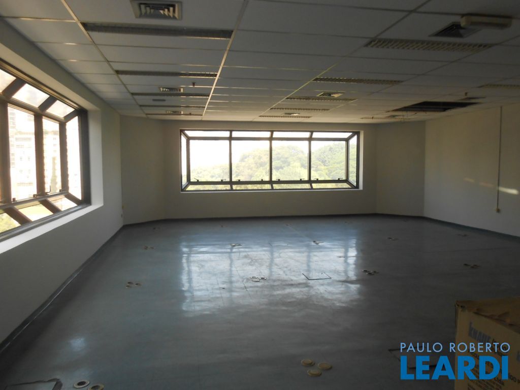 Excelente conjunto comercial no 9º andar com 98 metros de área privativa, 2 banheiros, ar condicionado central e 2 vagas de estacionamento.