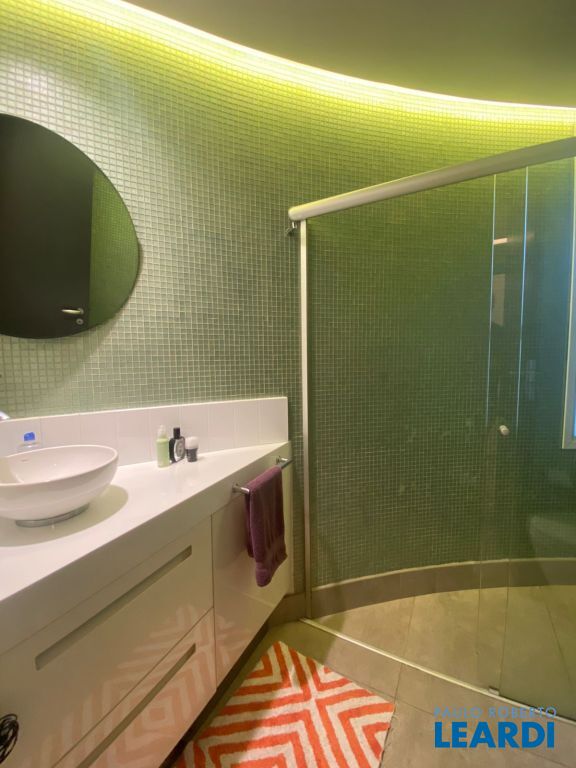 O condomínio é completo e oferece infraestrutura de lazer de alto nível, incluindo 2 salões de festas, piscina aquecida, quadra poliesportiva e academia totalmente equipada. Destaque para os acabamentos de altíssimo padrão: armários Ornare, metais e louças DECA, porcelanato Portobello, pastilhas italianas Trend, automação Jung, portas especiais Rimadesio, além de caixilharia acústica e persianas com controle remoto.