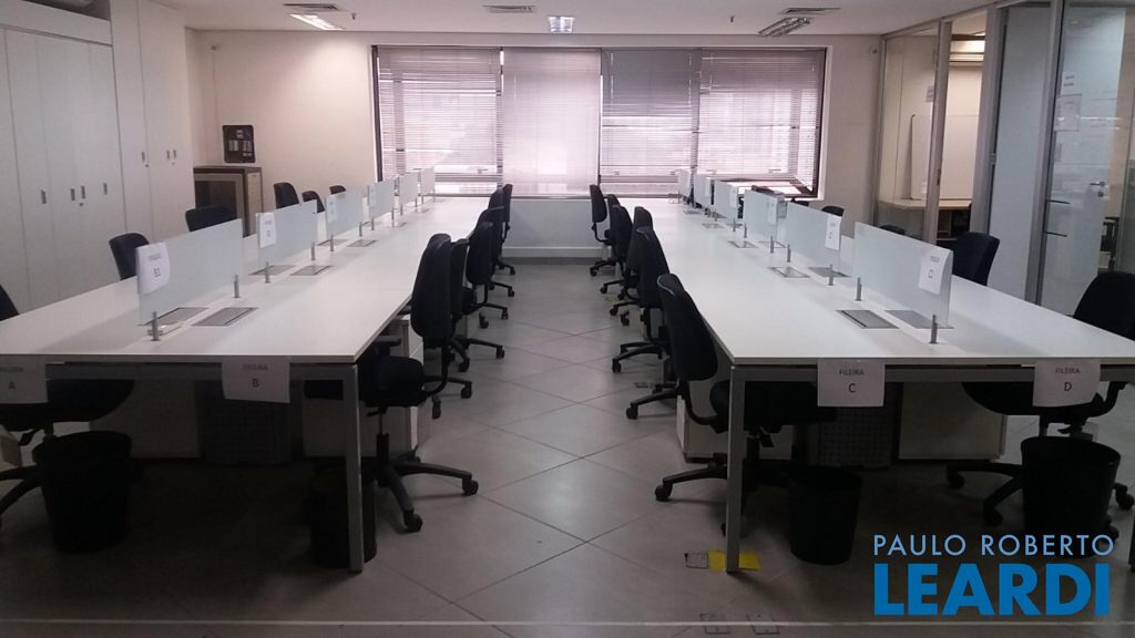 Salão dividido em espaço com 24 posições de trabalho, sala de reunião com 8 posições, escritório, 2 banheiros, 1 copa, 2 vagas de garagem. - vende mobiliado no estado em que se encontra ou sem mobília.2903
