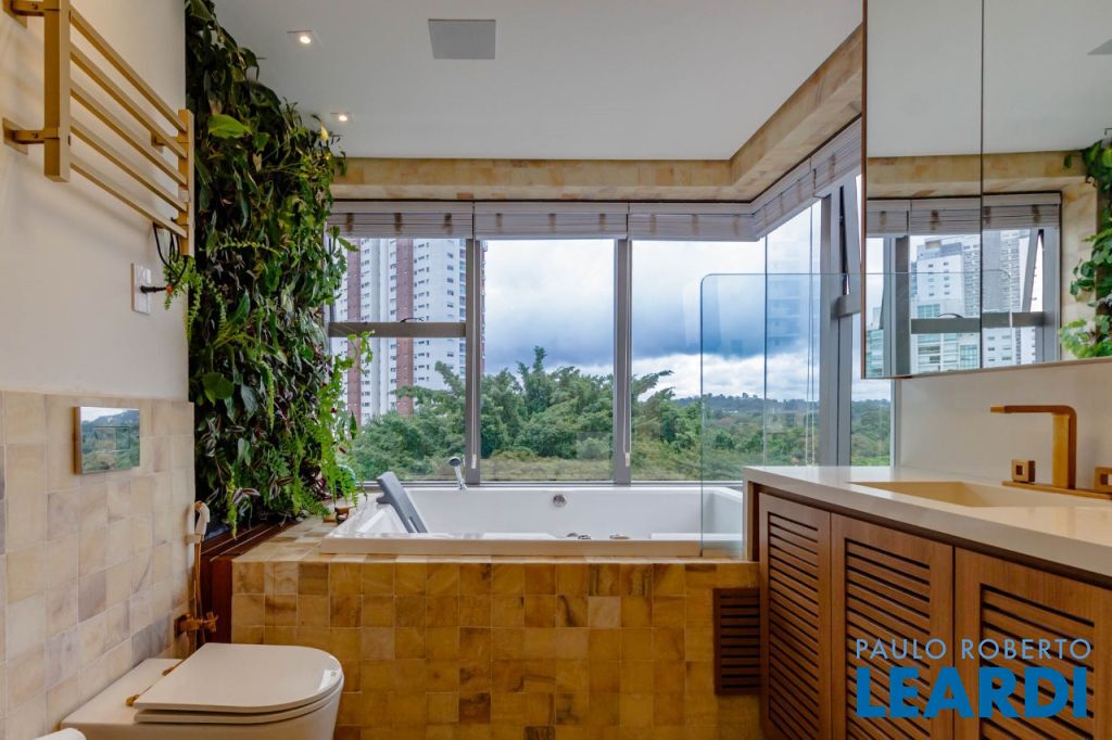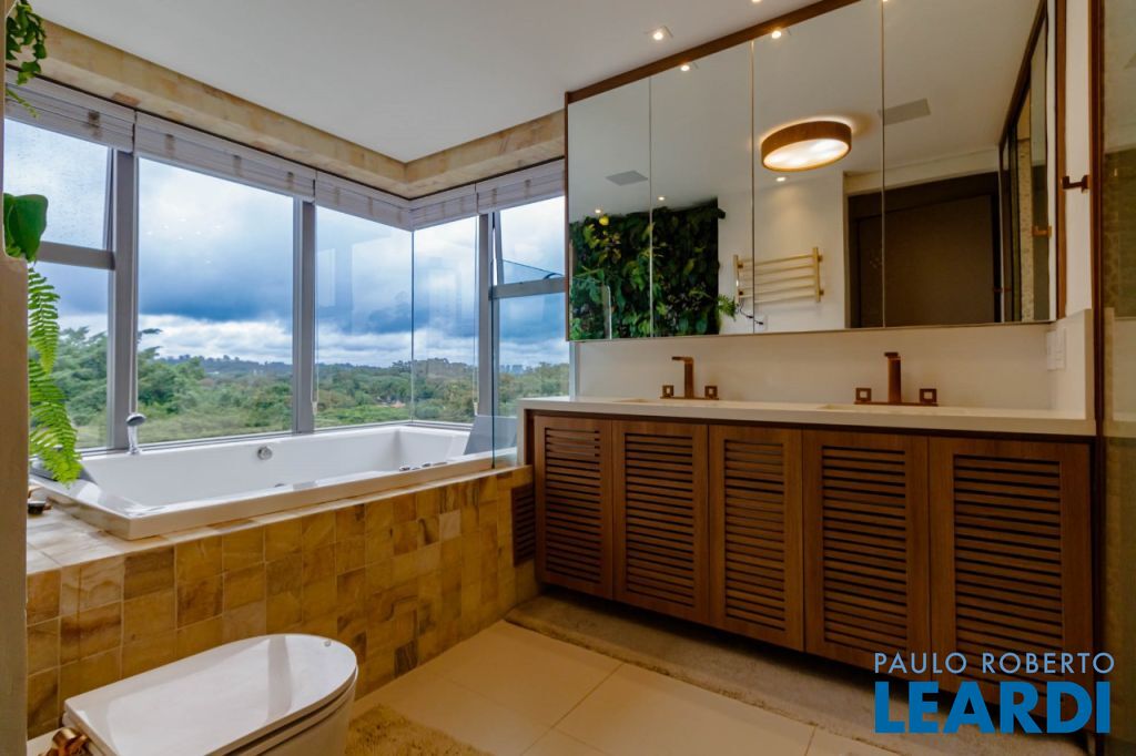 Charme a parte fica para a suite master, com closet e uma sala de banho com paisagismo para apreciar a vista.