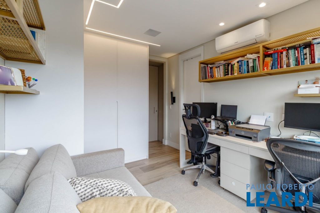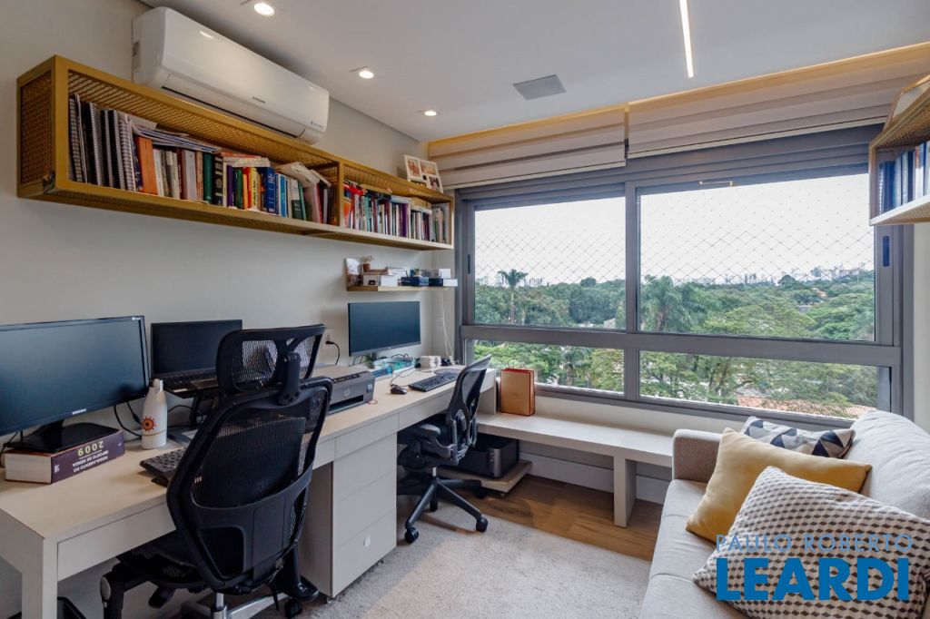 A parte íntima apresenta home theater e quatro suítes planejadas e decoradas com extremo bom gosto.