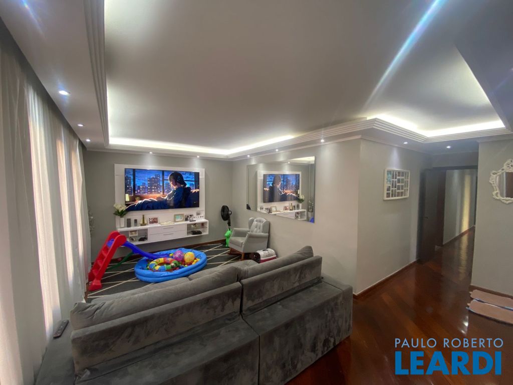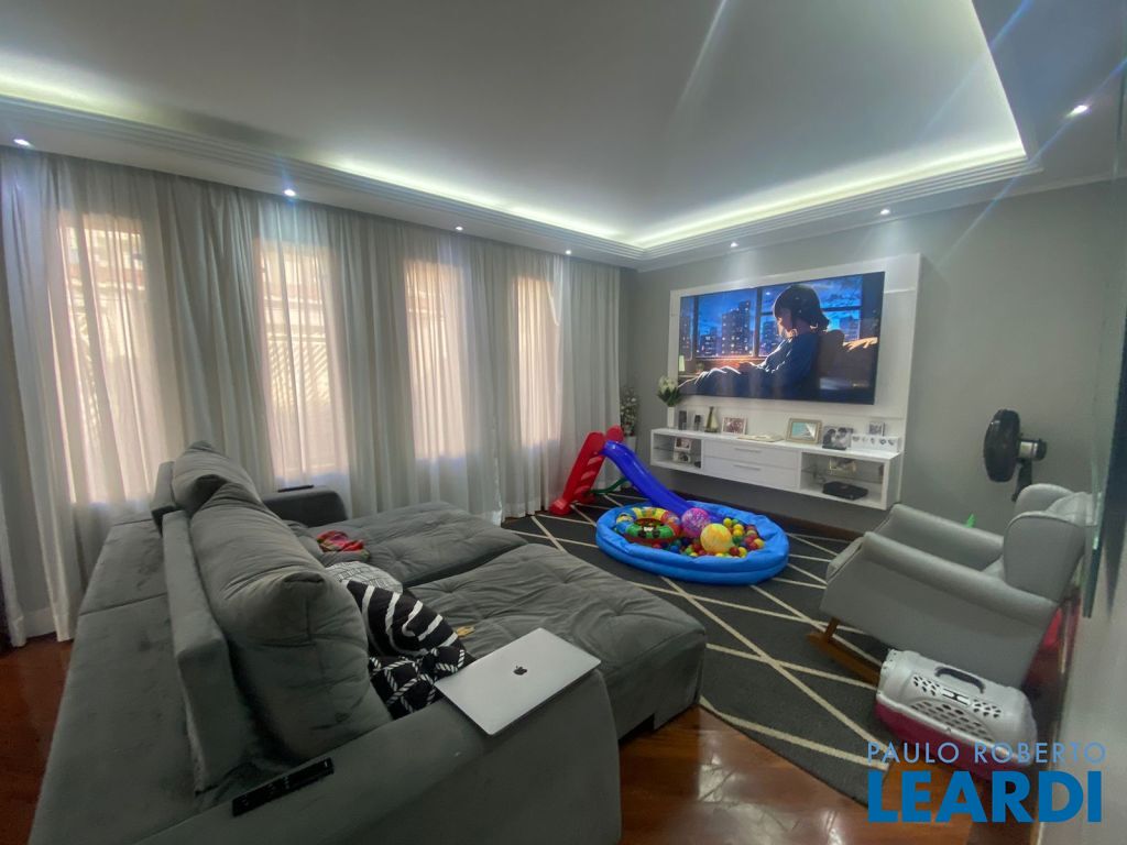 Sala Aconchegante: Ambiente espaçoso com sancas de gesso, um elegante bar em assoalho de ipê e um lavabo, perfeito para receber amigos e familiares.