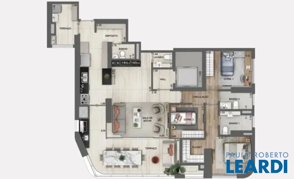 HALL LIVING 2 AMBS, HD 3 DTS SENDO 1 ST, CLOSET, ESCRITORIO, TERRACO INTEGRADO, B. SOCIAL, COZINHA, AE, AS, QE, WC...
