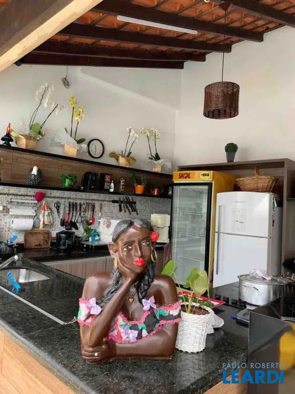 3 dormitórios, duas suítes pequenas e uma suíte com hidromassagem, sala de tv, sala de visita, sala de jantar, lavabo, cozinha equipada, área de serviço, varandas cobertas no térreo e no piso superior. Quiosque com churrasqueira, fogão a lenha, fogão elétrico, geladeira, geladeira expositora, filtro de água, mesa para 10 lugares.