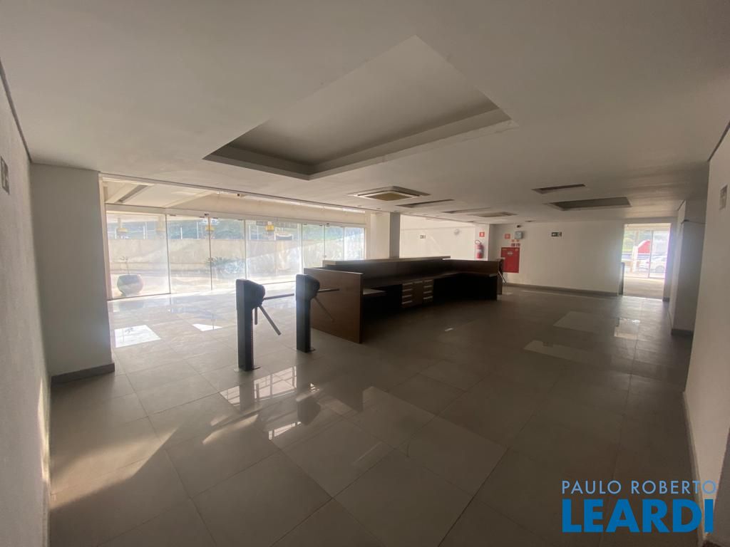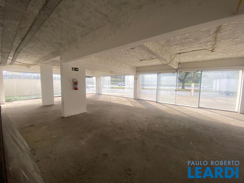 Térreo com 348 m², dividido em duas partes > 174 m2 de vitrine exposto para a Av Nações Unidas, recepção no meio com balcão, catracas e elevadores para acesso aos andares e outros 174 m2 para a Luiz Seraphico para fins comerciais; ambas as partes possuem dois banheiros, copa e sala de estoque e quatro vagas exclusivas.