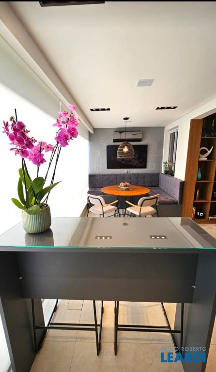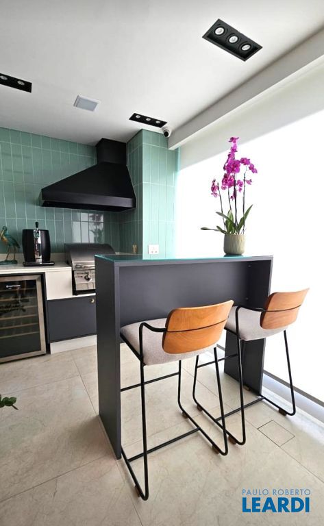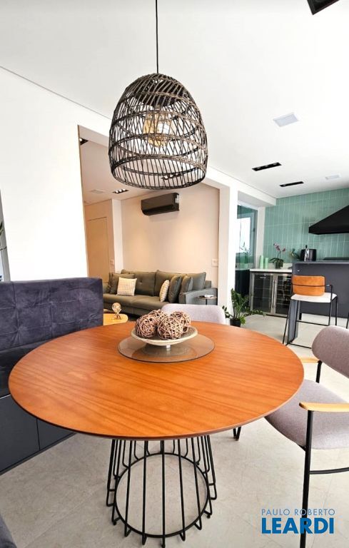 Boa sala para vários ambientes como estar, jantar, espaço também no terraço gourmet para um canto super agradável com mesas e bancos que atende a churrasqueira e o que vem da cozinha.