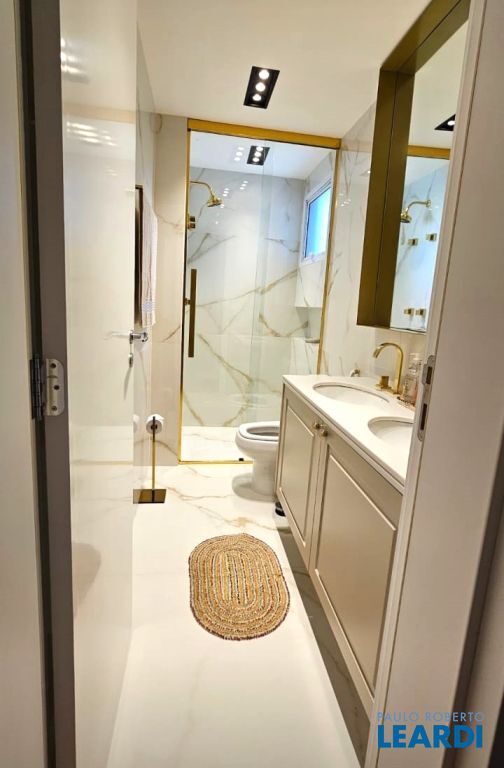 Banheiros com janelas externas, armários, iluminação instalada, box blindex.